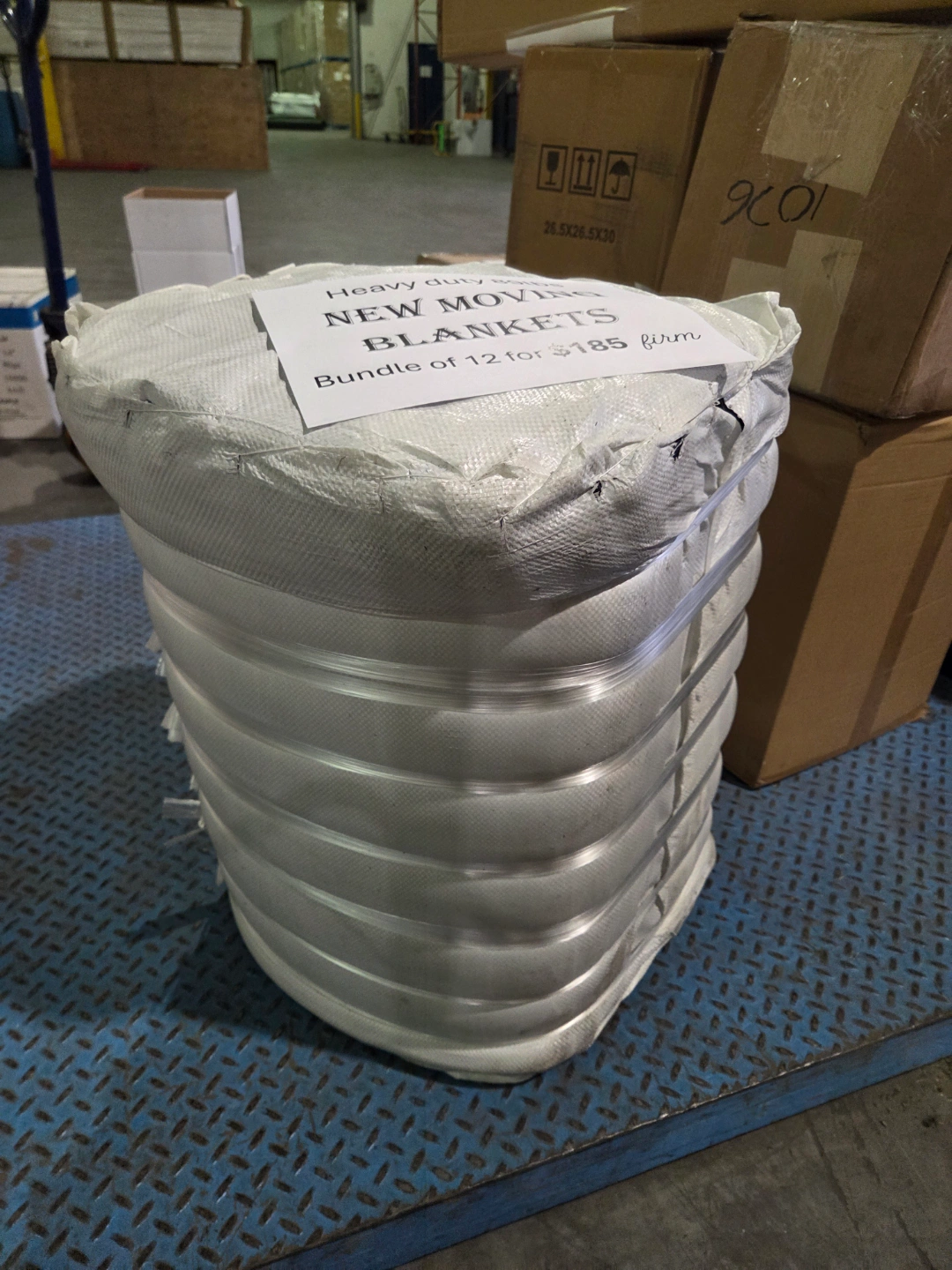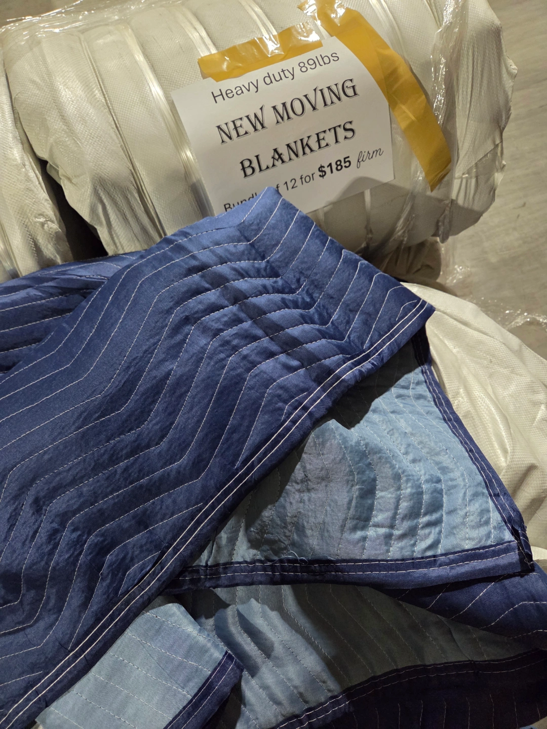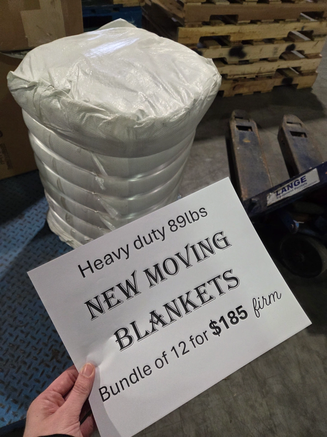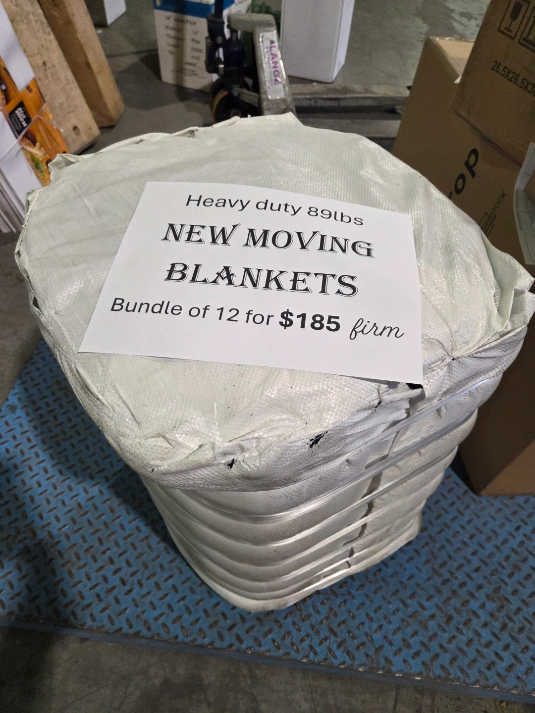 New moving blankets, heavy duty 89 lbs. Bundle of 12 for $185 firm. Must pickup. Please. no etransfer or long holds. this is a cash price. bring cash. This is in storage and I will meet you there. I can access the building during 8 to 430 Monday to Friday. No one is there outside of those times.