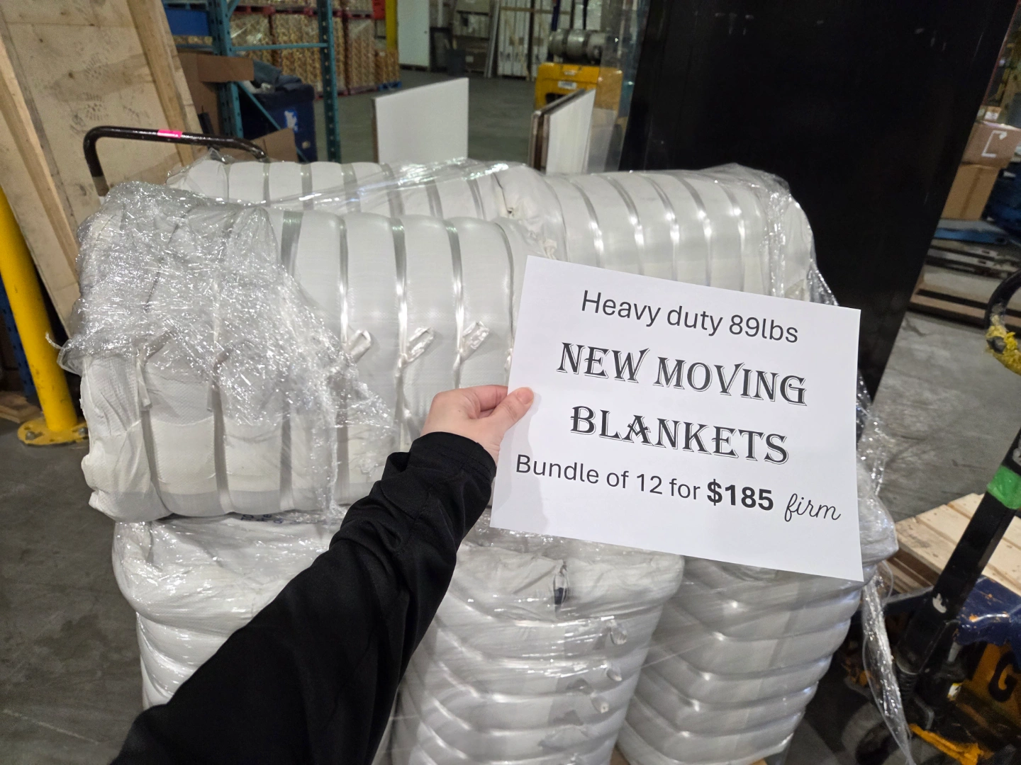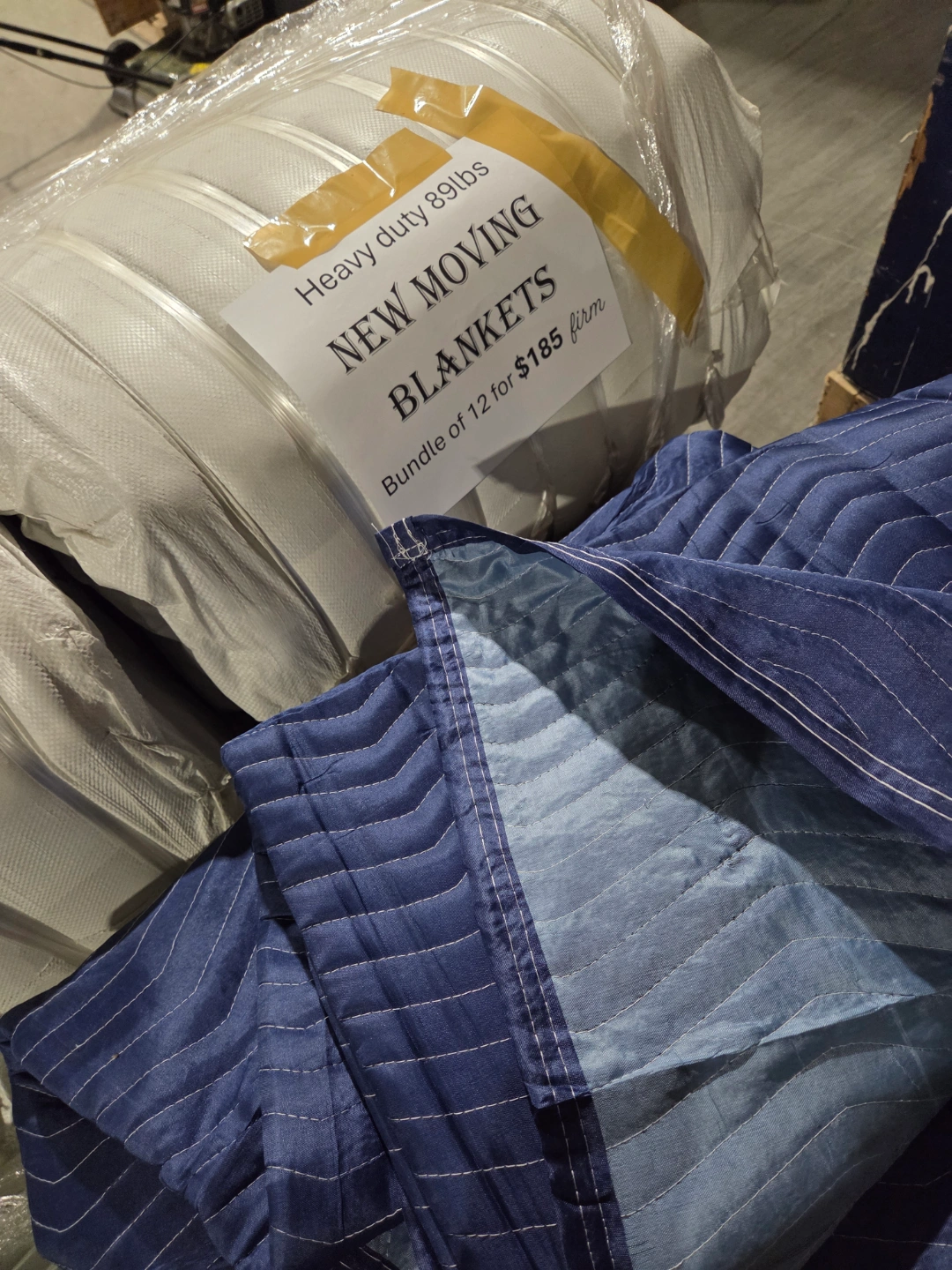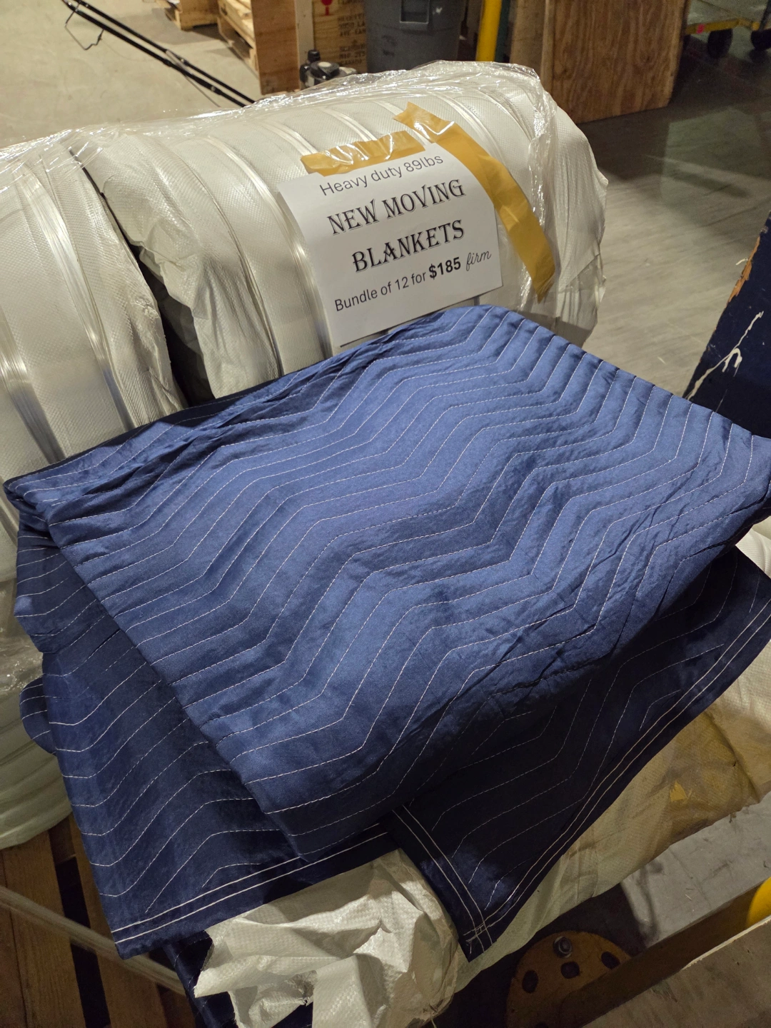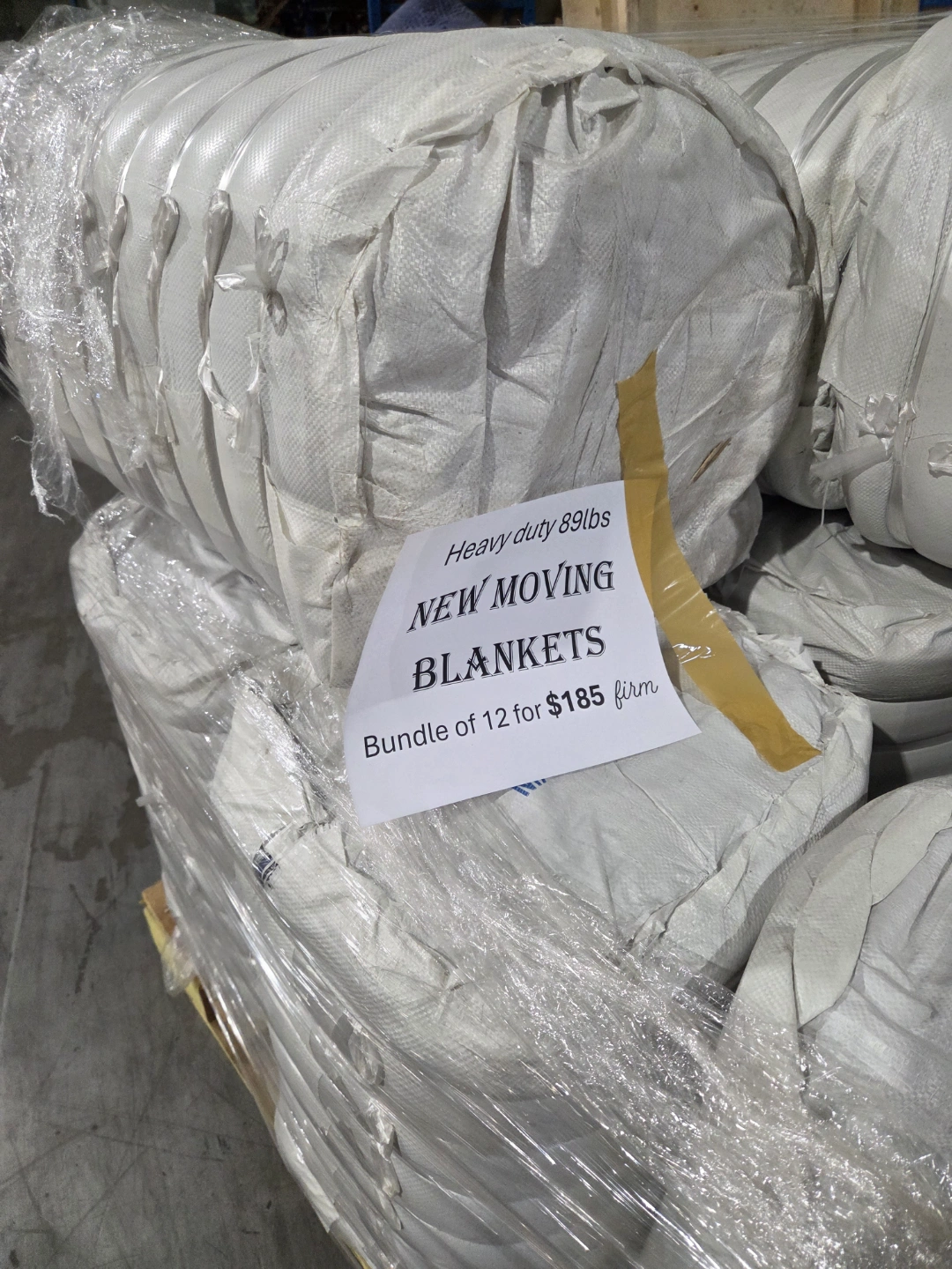 New moving blankets, heavy duty 89 lbs. Bundle of 12 for $185 firm. Must pickup. Please. no etransfer or long holds. this is a cash price. bring cash. This is in storage and I will meet you there. I can access the building during 8 to 430 Monday to Friday. No one is there outside of those times.