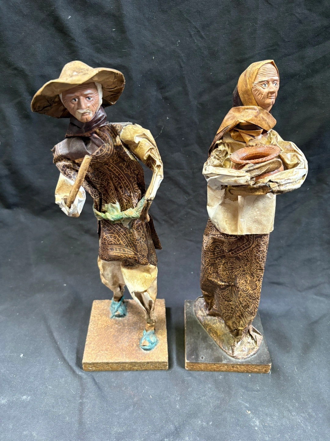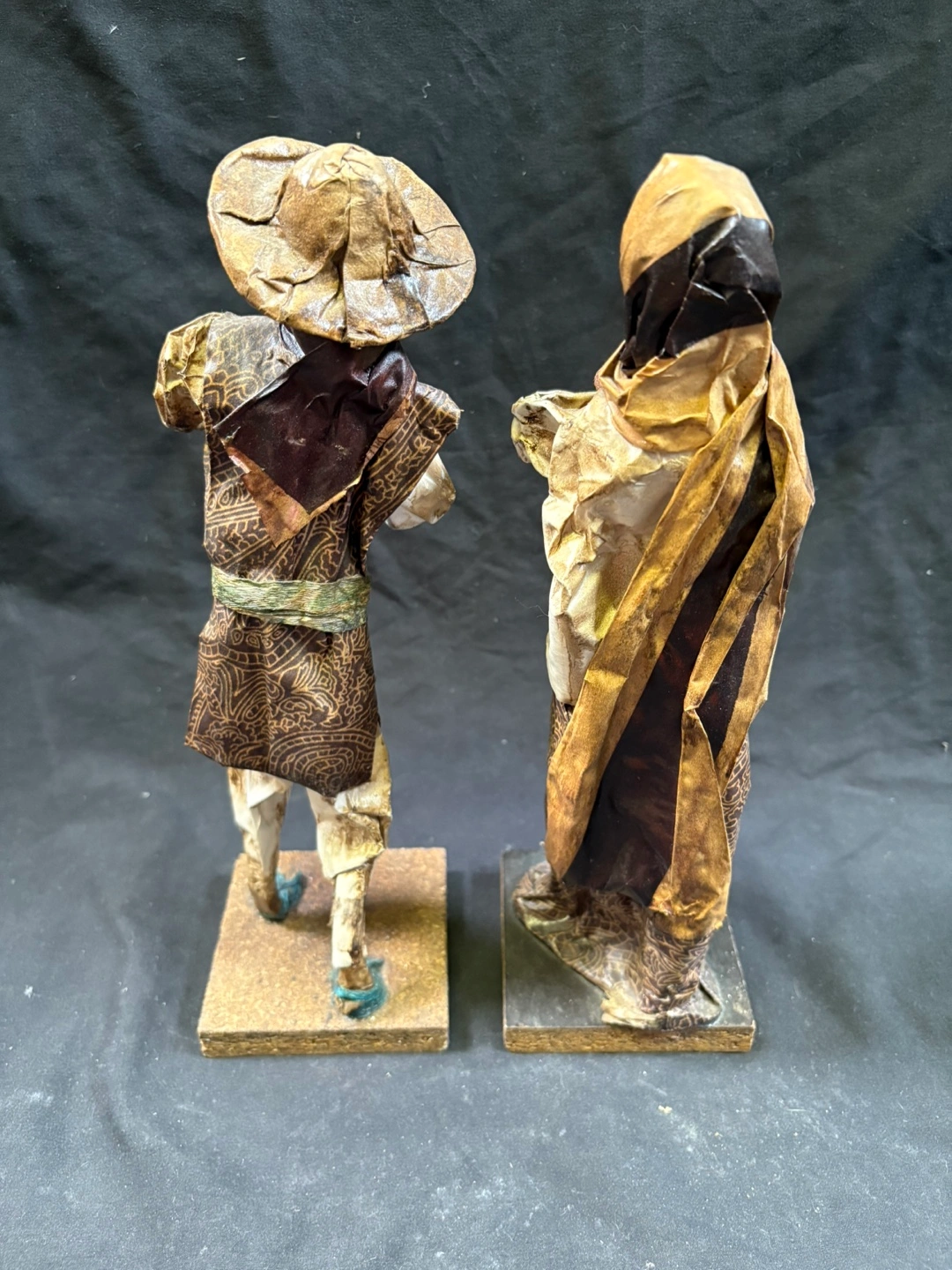 Good condition Vintage Papier-Mâché Figurines Set of Two Unique handmade figurines. Appear to be made of papier-mâché. Show signs of age and wear. One figure carries a bowl, the other carries a stick. Interesting folk art collectible. $3 Pick up Victoria Park and O’Connor area