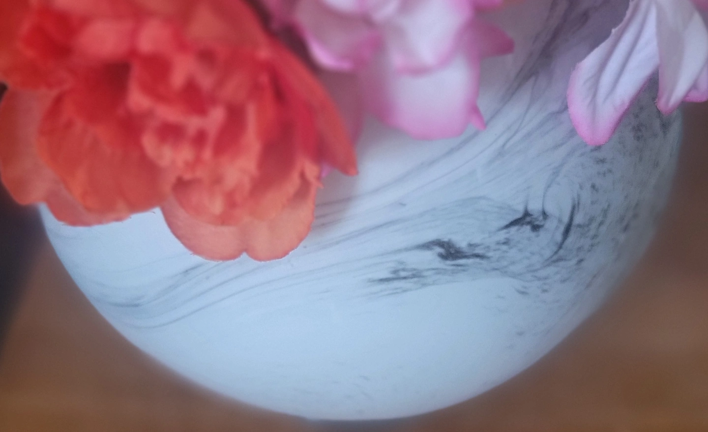 Round glass vase. Marble pattern. Perfect for small bouquets or home decor. Unique design. pick up only