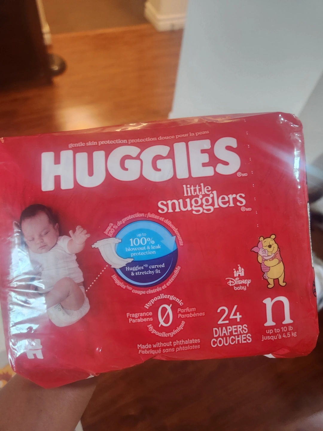 New, unopened package of Huggies Little Snugglers diapers. Size N, up to 10 lb. Disney Baby Winnie the Pooh design. Hypoallergenic and made without phthalates. 24 diapers.