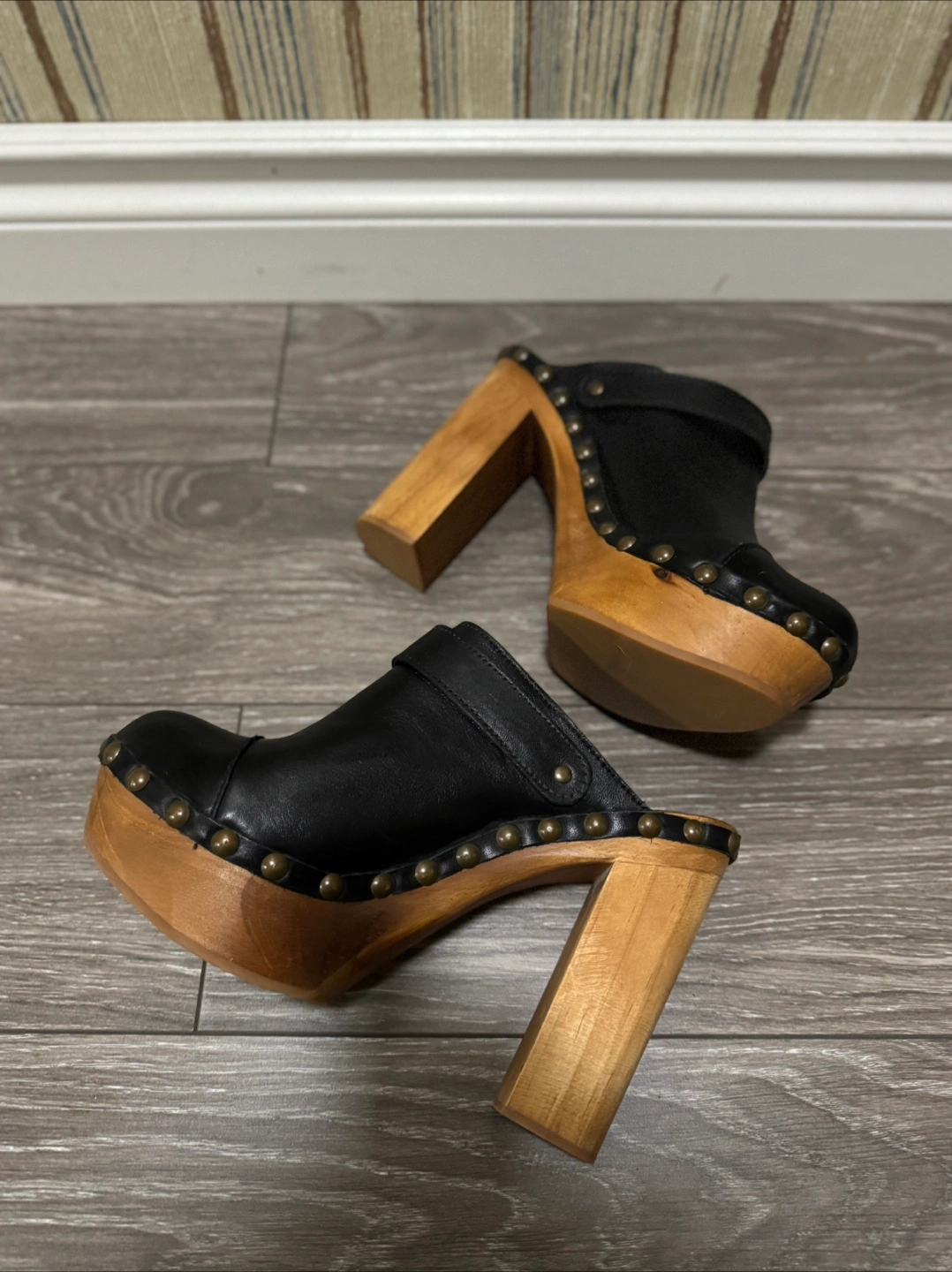 Elevate your style with these platform studded leather clogs from Jeffrey Campbell perfect for the Y2K trend. Originally sells for $200. Made in Spain Fits a size 8 Womens. Comes with the shoes themselves only. No box. Please see photos for any minor imperfections. Still in very good condition and makes a good addition for any fashionista’s wardrobe.