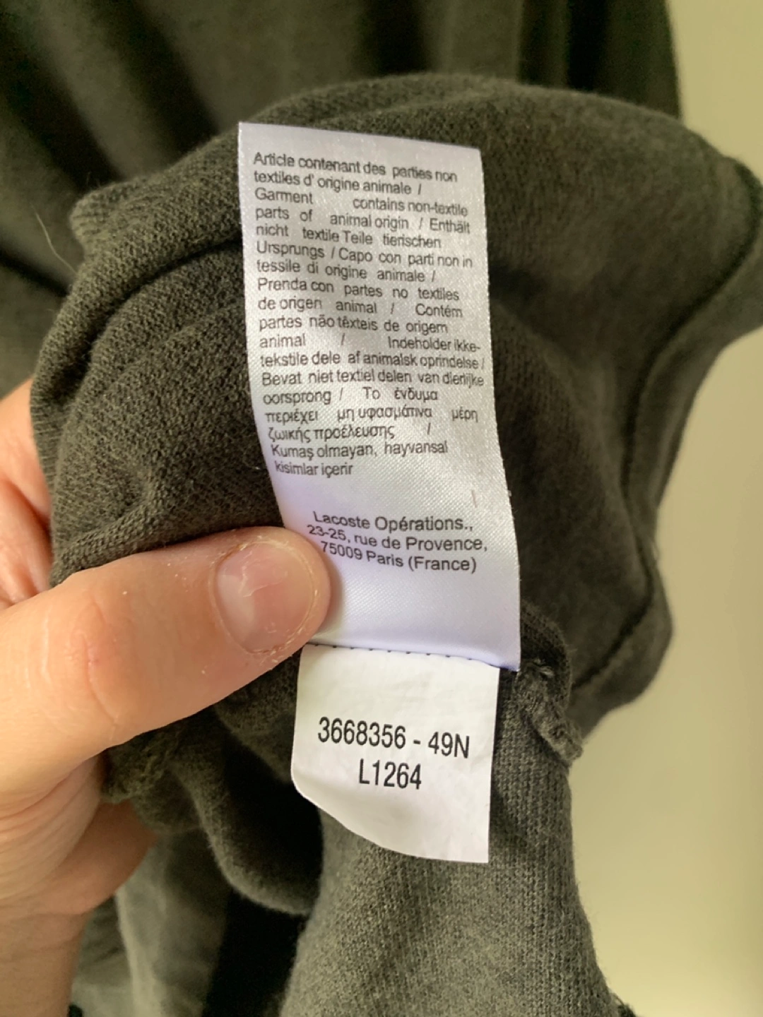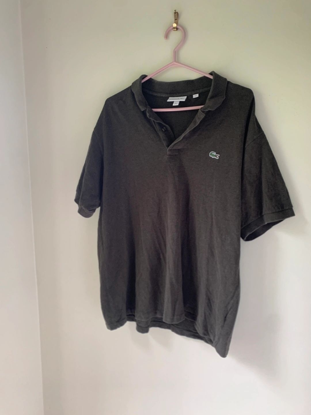 Dark green Lacoste men's polo shirt. Classic fit. Size US XL, FR 6. 100% cotton. Made in Peru.