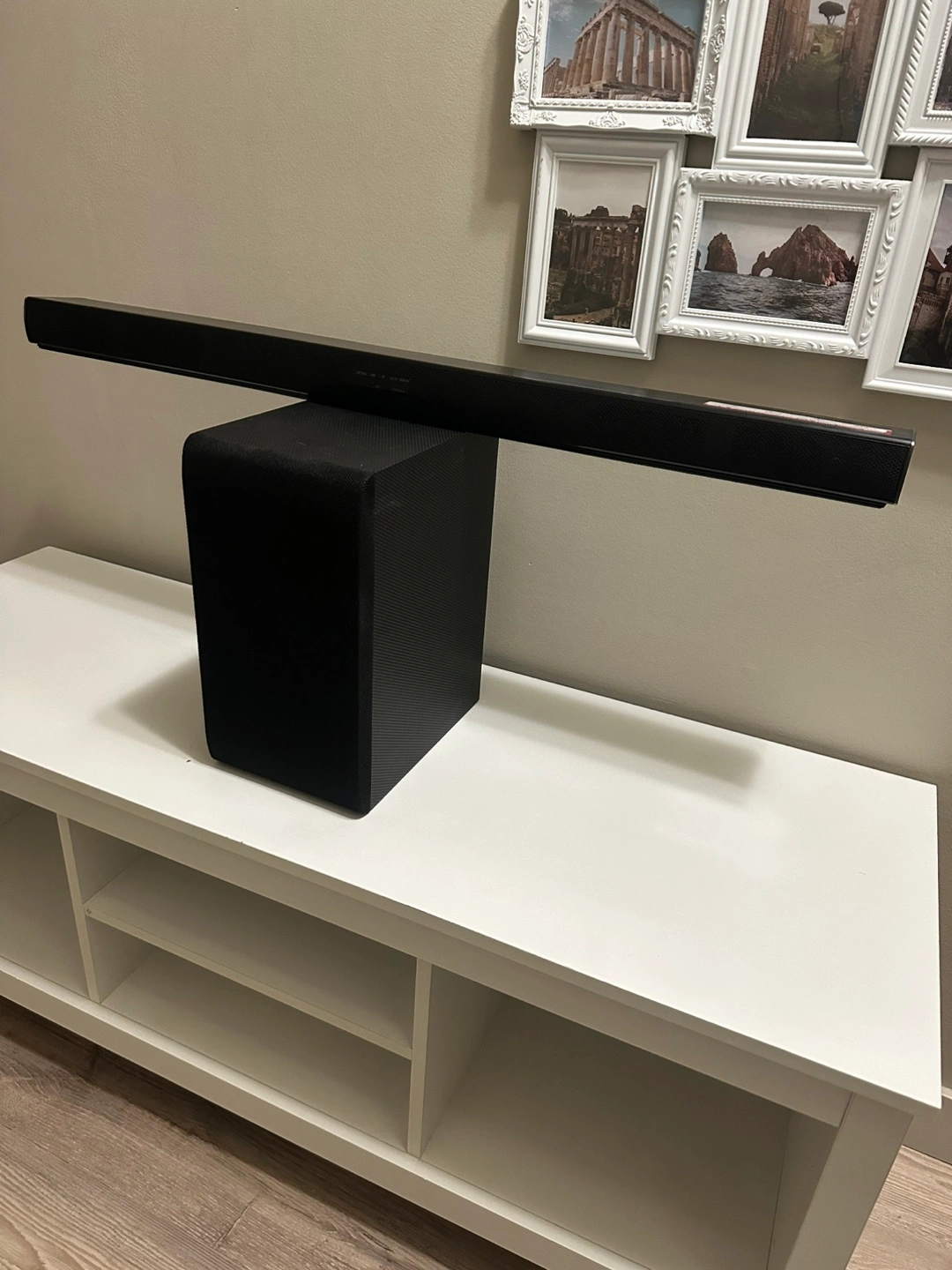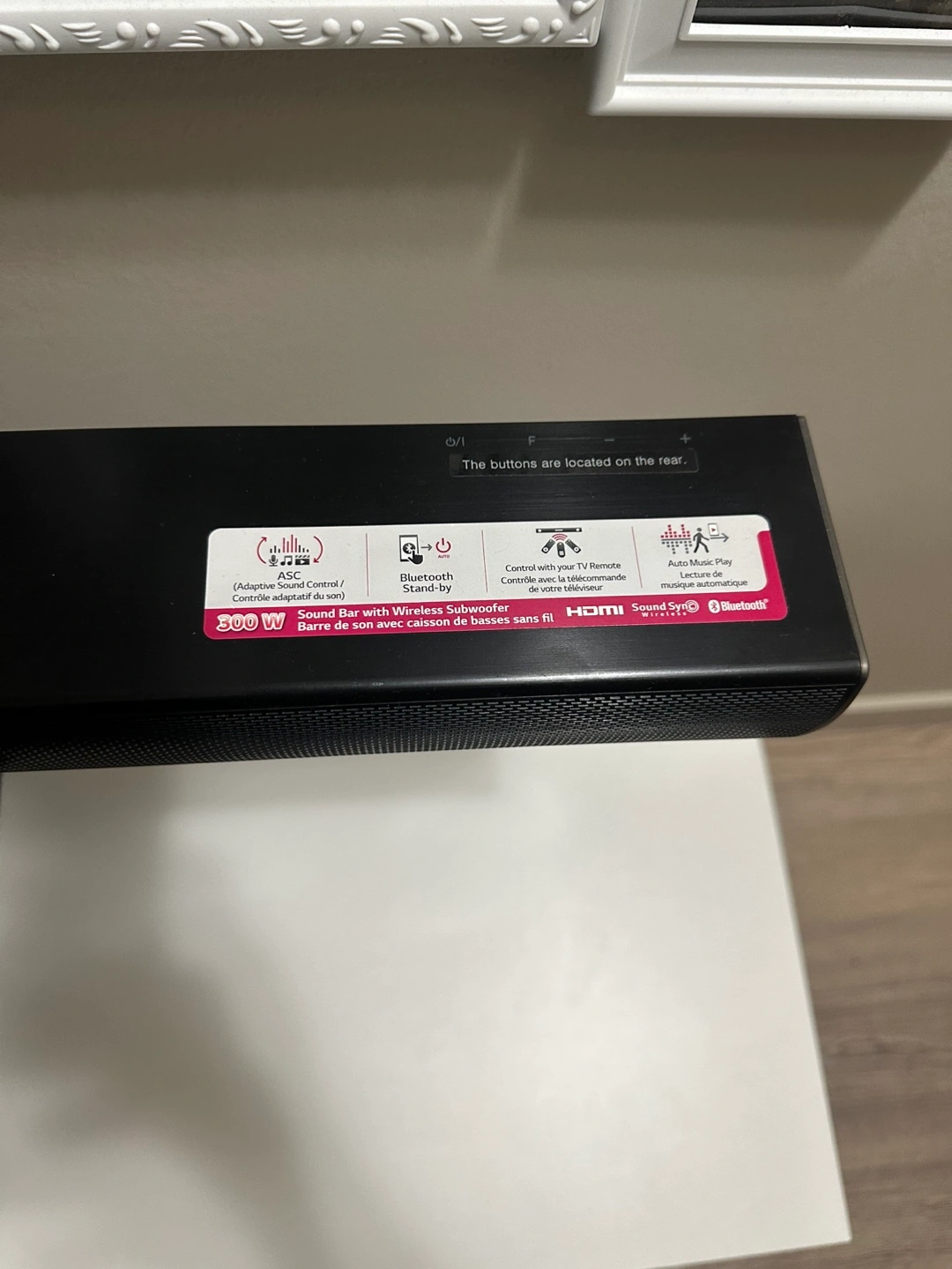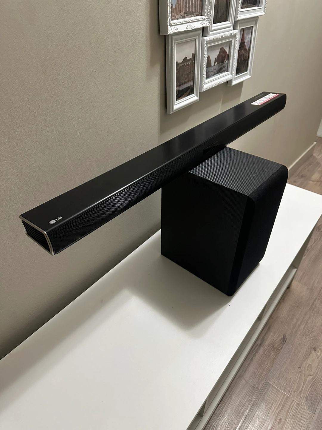 Enhance your home entertainment with this powerful LG 300W sound bar. Comes with a wireless active subwoofer for deep bass and multiple connectivity options. Features: 300 Watts of powerful sound Wireless active woofer Bluetooth connectivity HDMI and USB ports Sleek and modern design Excellent condition Pickup in Red Deer. Serious inquiries only, please.