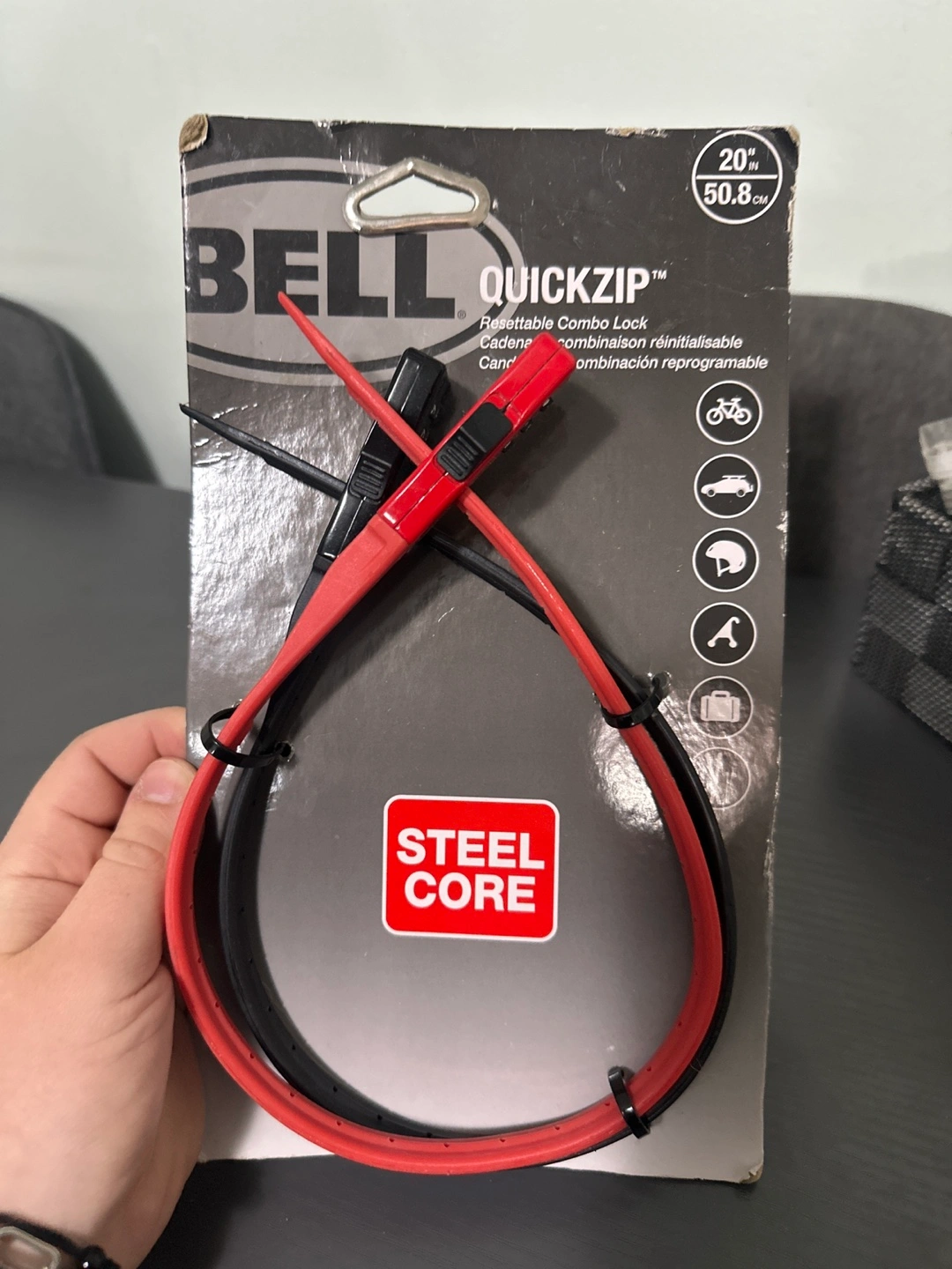 Steel core. Resettable combination. Red and black. 20 inch cable.