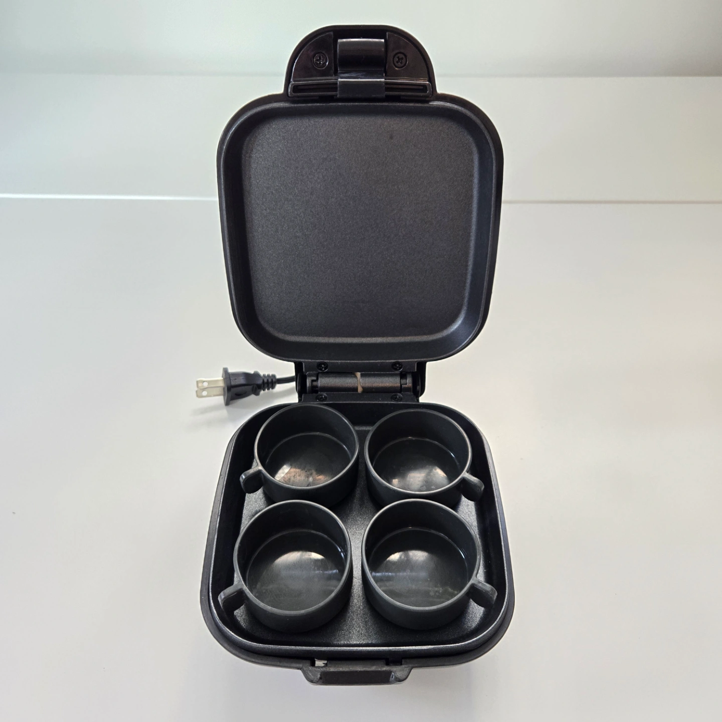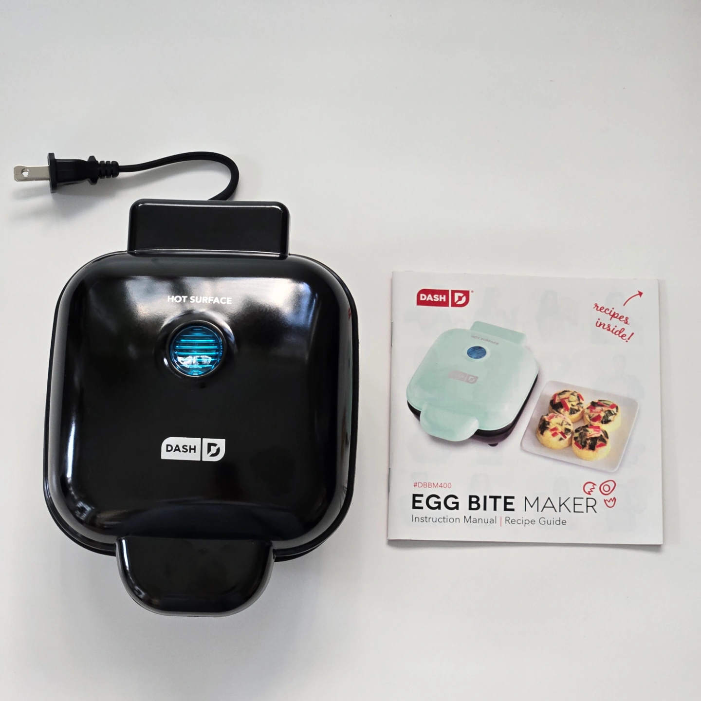 • Used only once • No scratches, chips, cracks or dents • Egg bite molds are easy-release silicone • It includes: Dash Egg Bite Maker, 4 silicone egg cups, and recipe guide • Measurements: 3.9" x 5.5" x 7.9"