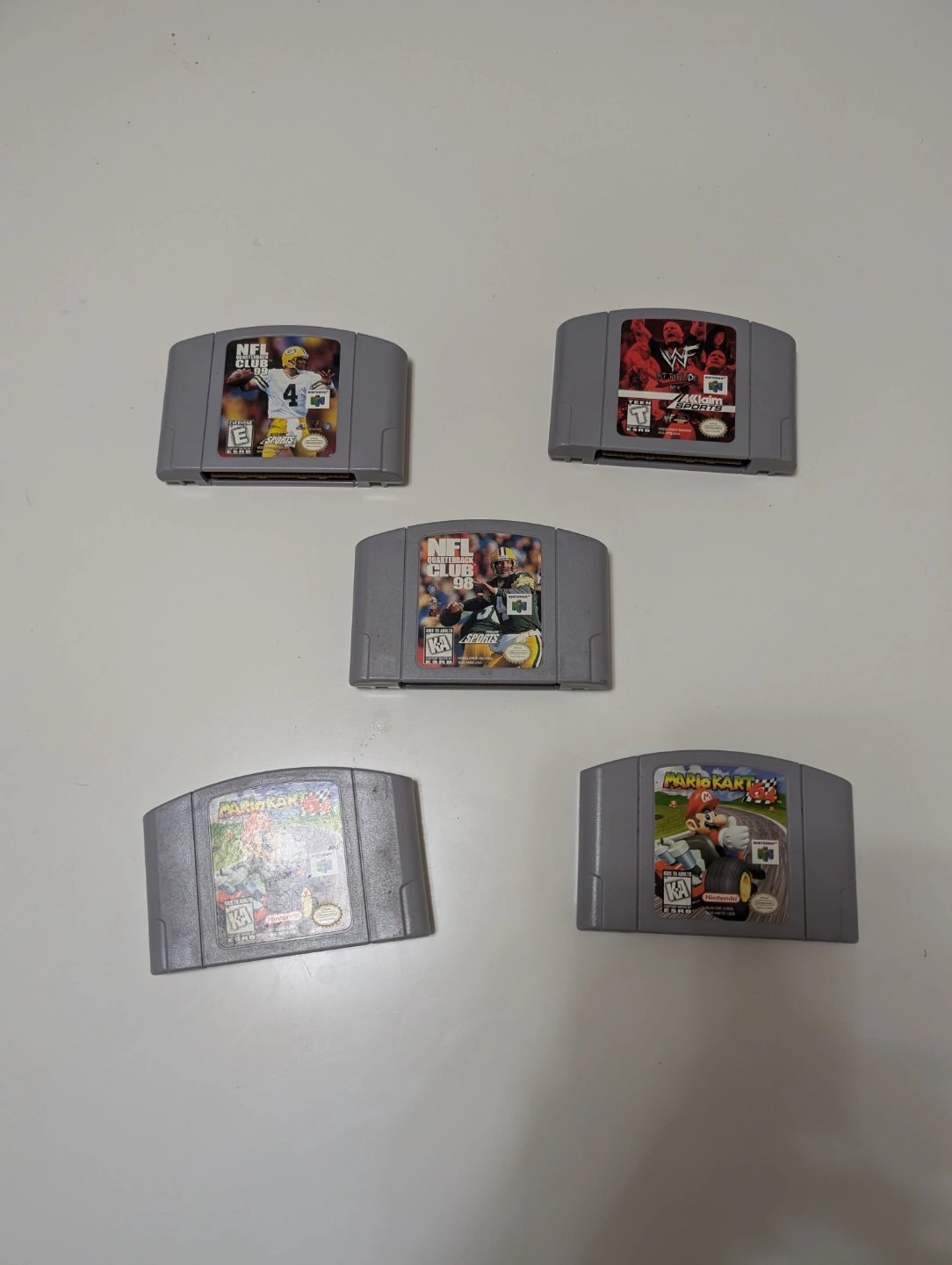 4 N64 games: Mario Kart 64 $50 WWF Attitude $20 NFL Quarterback Club 99 $15 NFL Quarterback Club 98 $15 $90 for all games