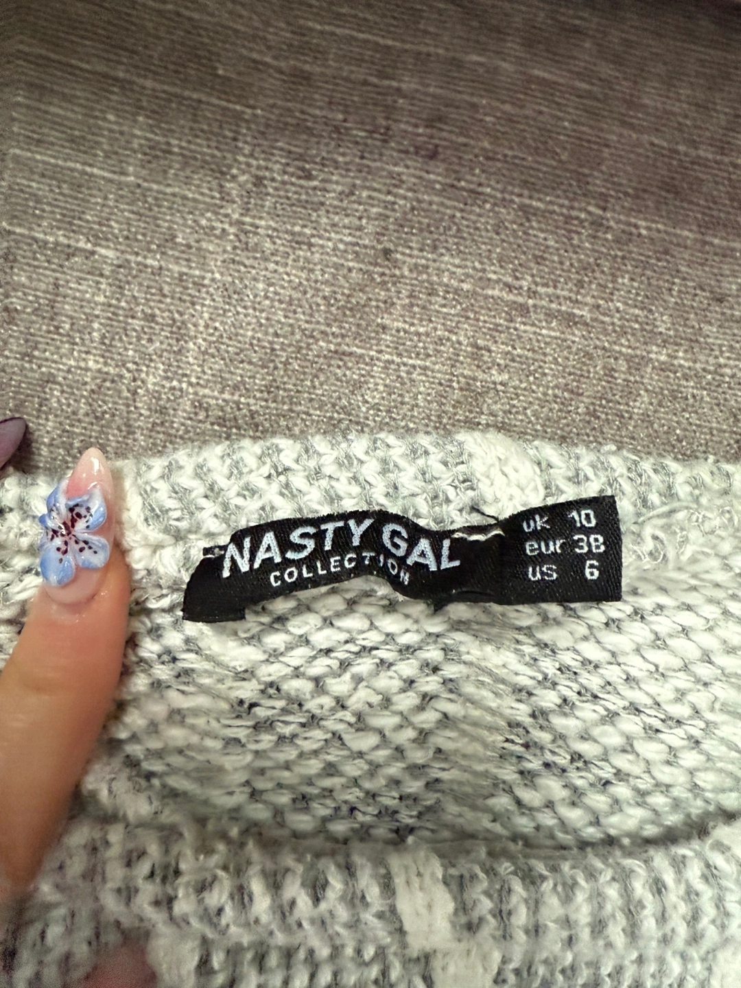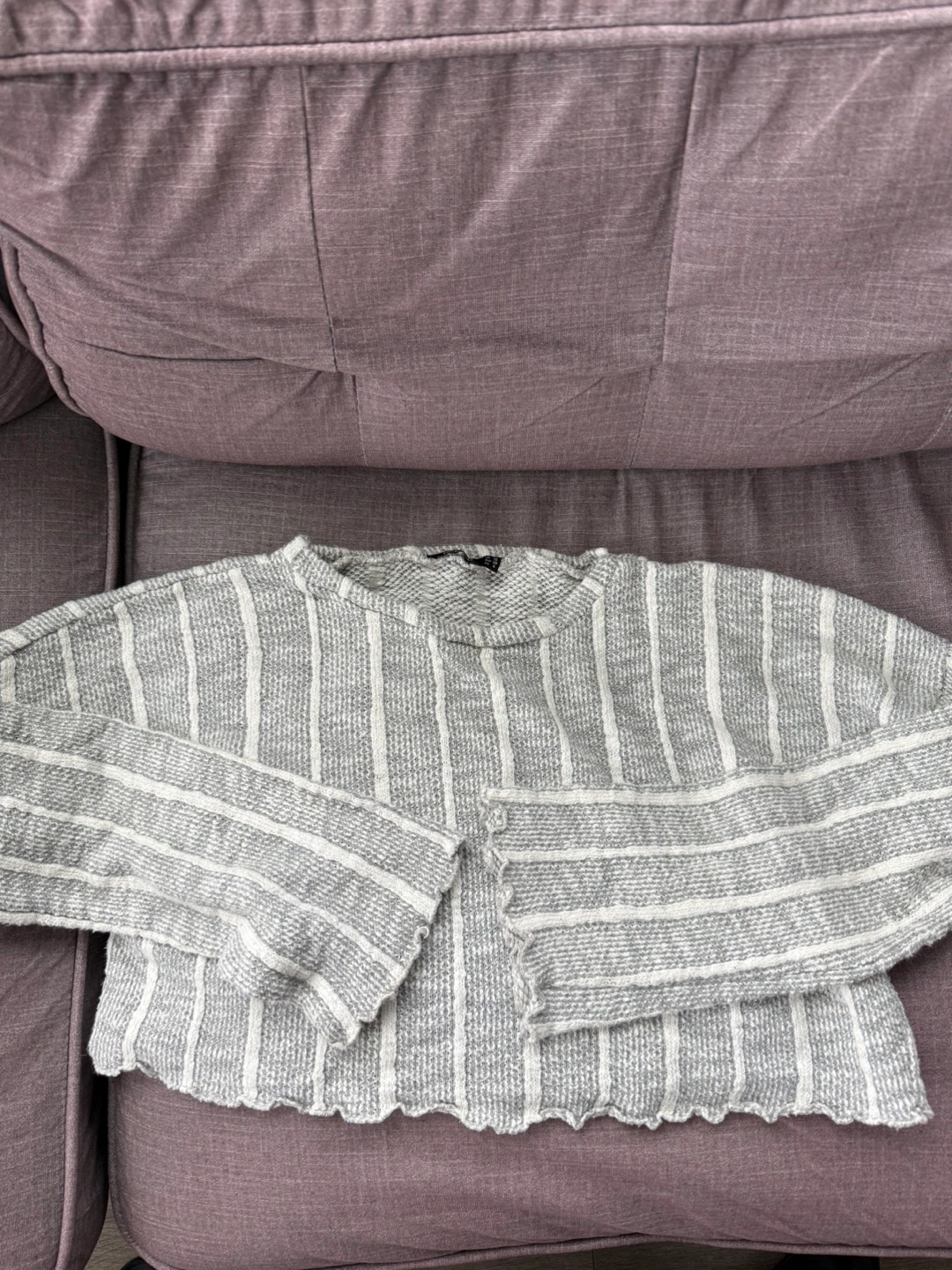 Women's cropped sweater. Grey and white stripes. Long sleeves. Size 6. Excellent condition.