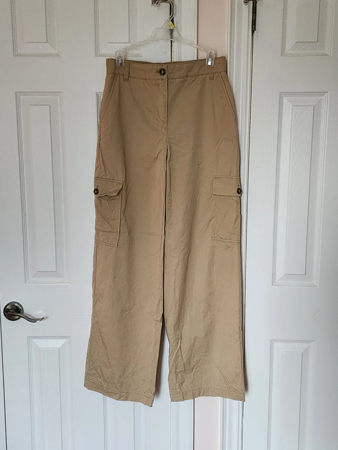 Khaki coloured wide leg cargo trousers from RW & Co. Brand new and only worn a handful of times. Freshly washed and hung to dry, hence the wrinkles (needs a to be steamed). Back pockets are sewn shut. Outseam- 41.5" Inseam - 32.5" Waist size 2 or 13.5" - has a stretch band on the back. Pick up at Sheppard West subway station and cash only please :)
