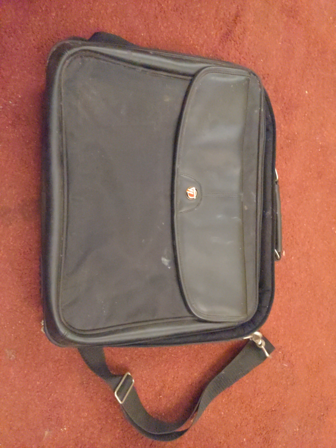 Black laptop carrying case. Shoulder strap included. No wear and tear. Good condition, just dusty.
