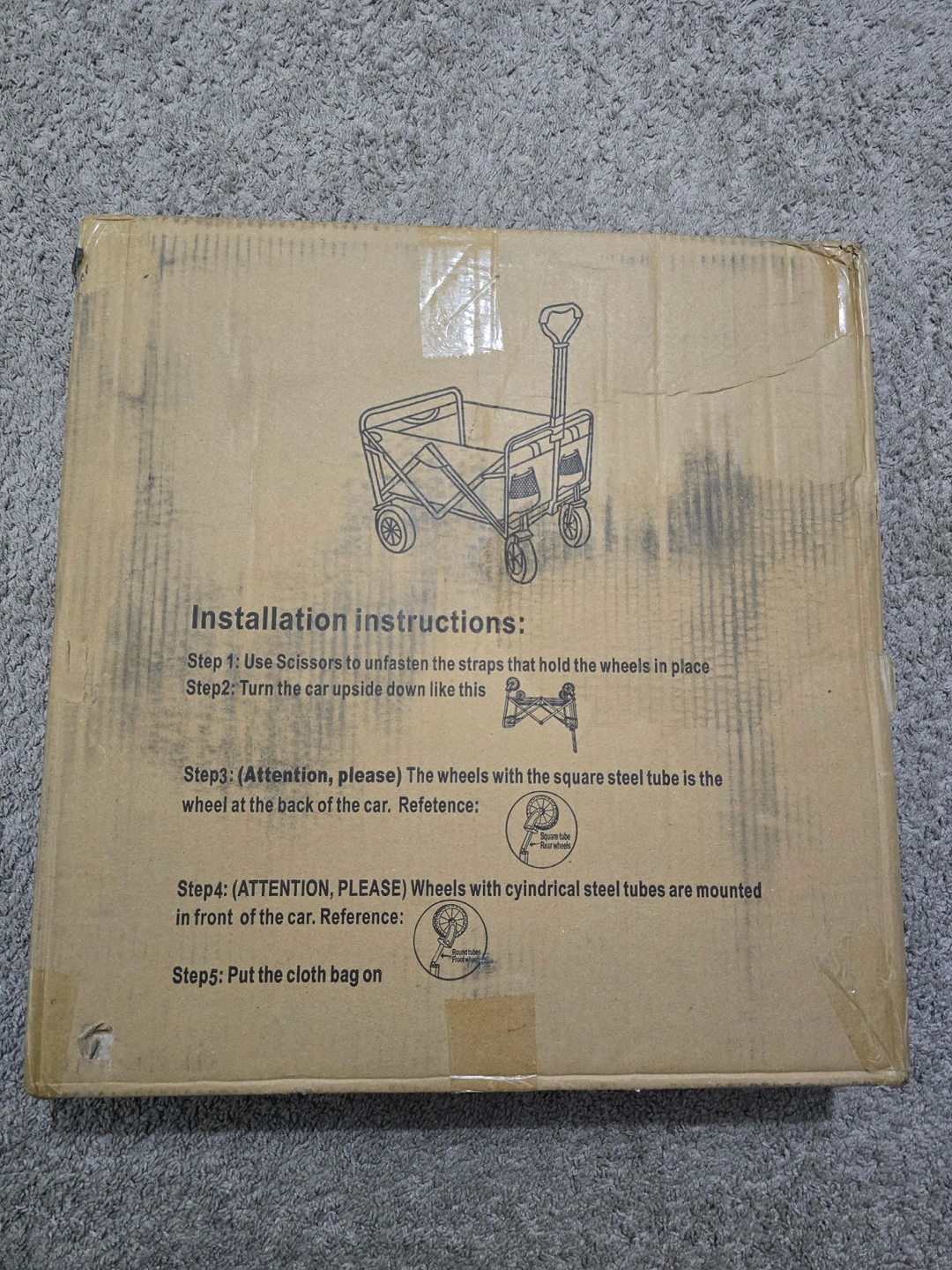 Durable, foldable wagon. Great for hauling loads up to 450 lbs. Features a convenient pull handle and large capacity. Easy to assemble and store.