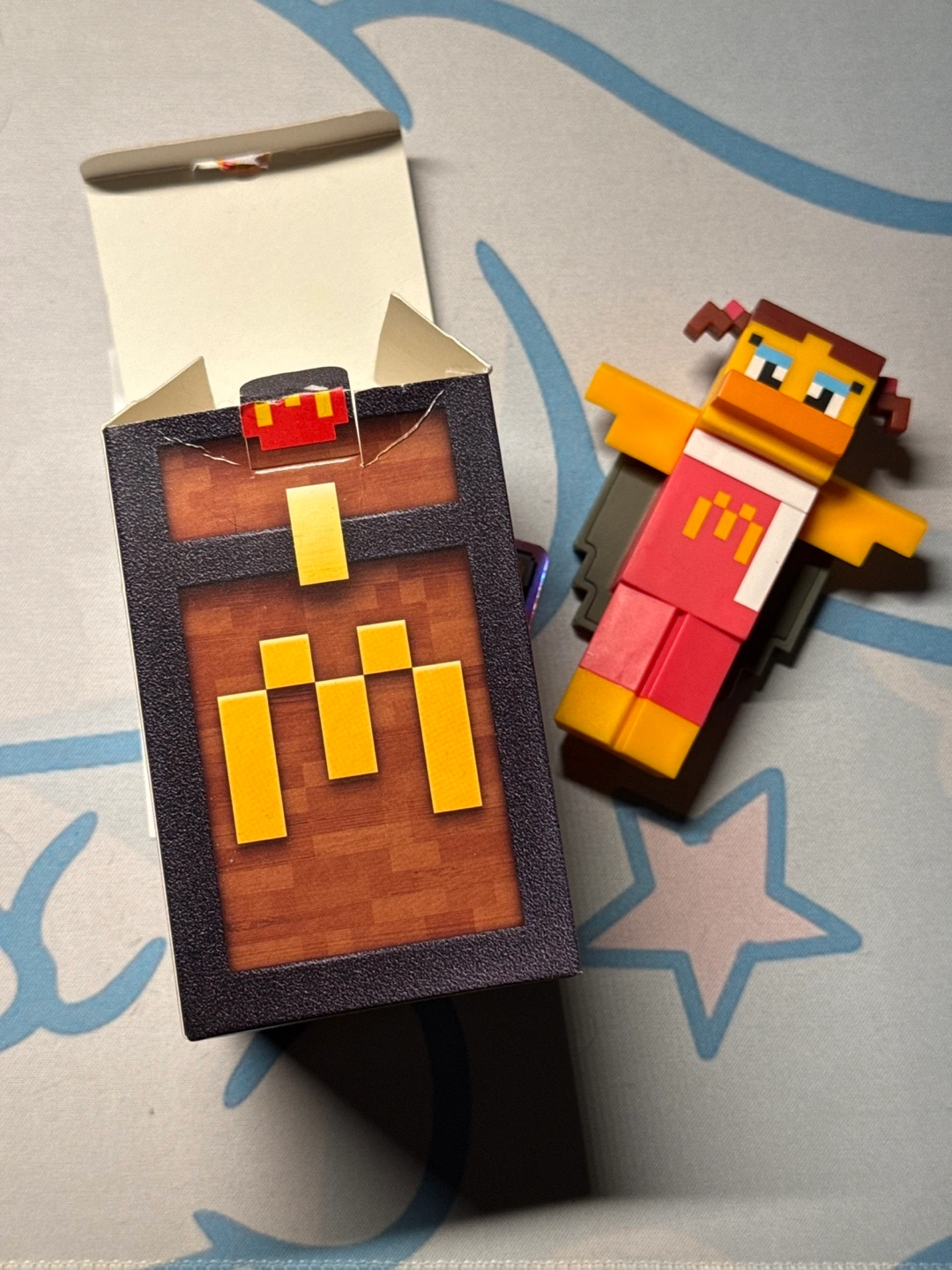 Minecraft character collectible toy. Comes in original McDonald's Happy Meal box. Includes code for Minecraft skin. The box is a bit busted