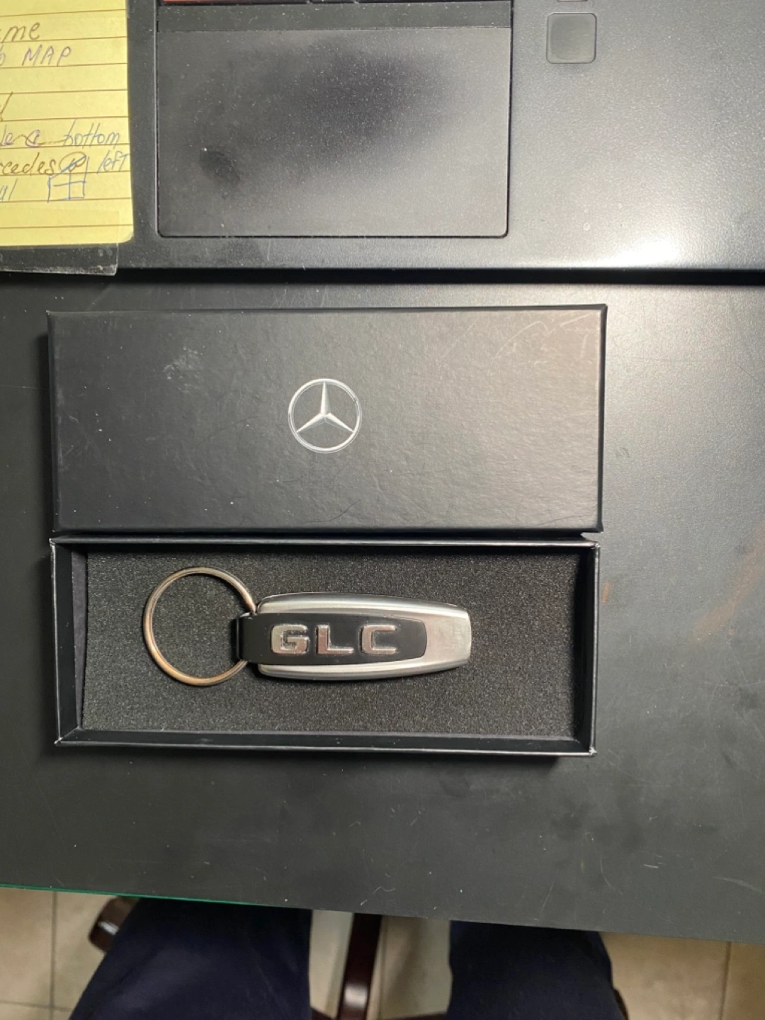 New Mercedes-Benz GLC keychain. Silver metal with black accents. Comes in original box.