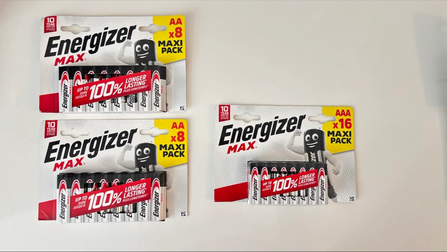 Two 8-pack AA and one 16-pack AAA Energizer MAX batteries. Long-lasting power. 10-year shelf life. Cash and pick up only .