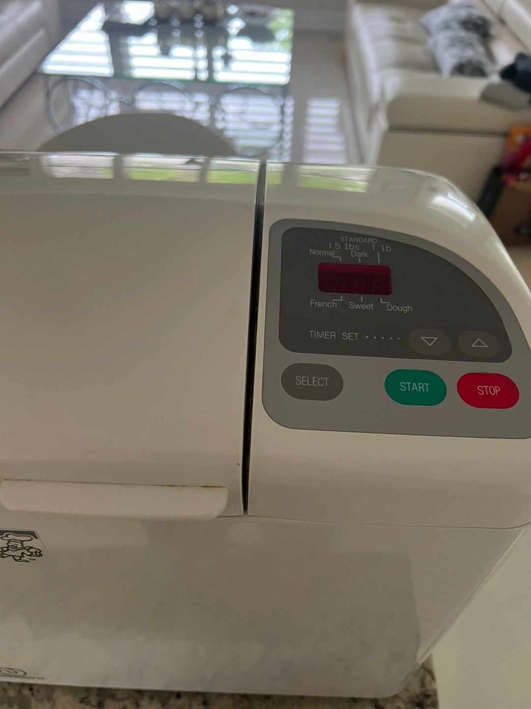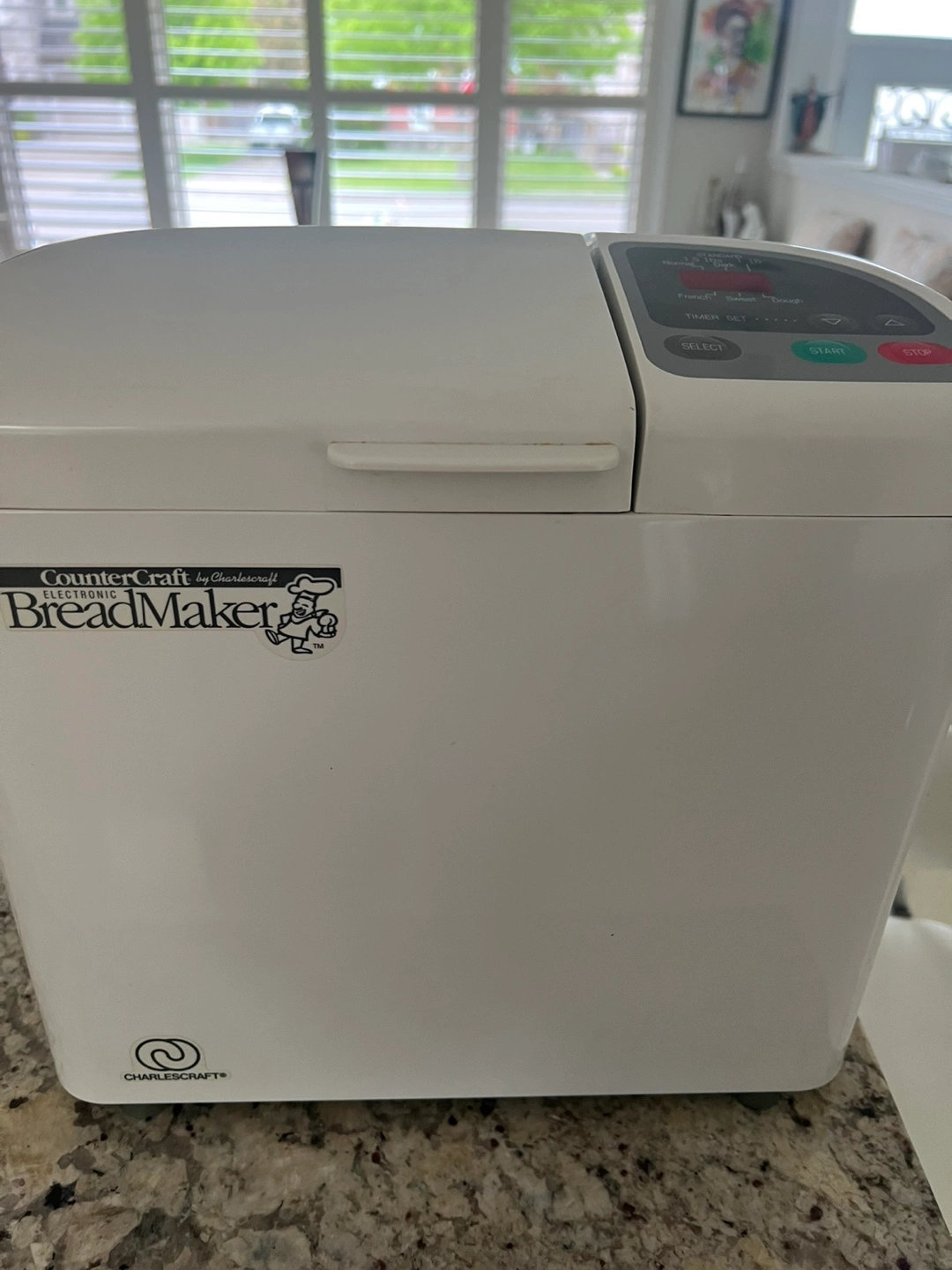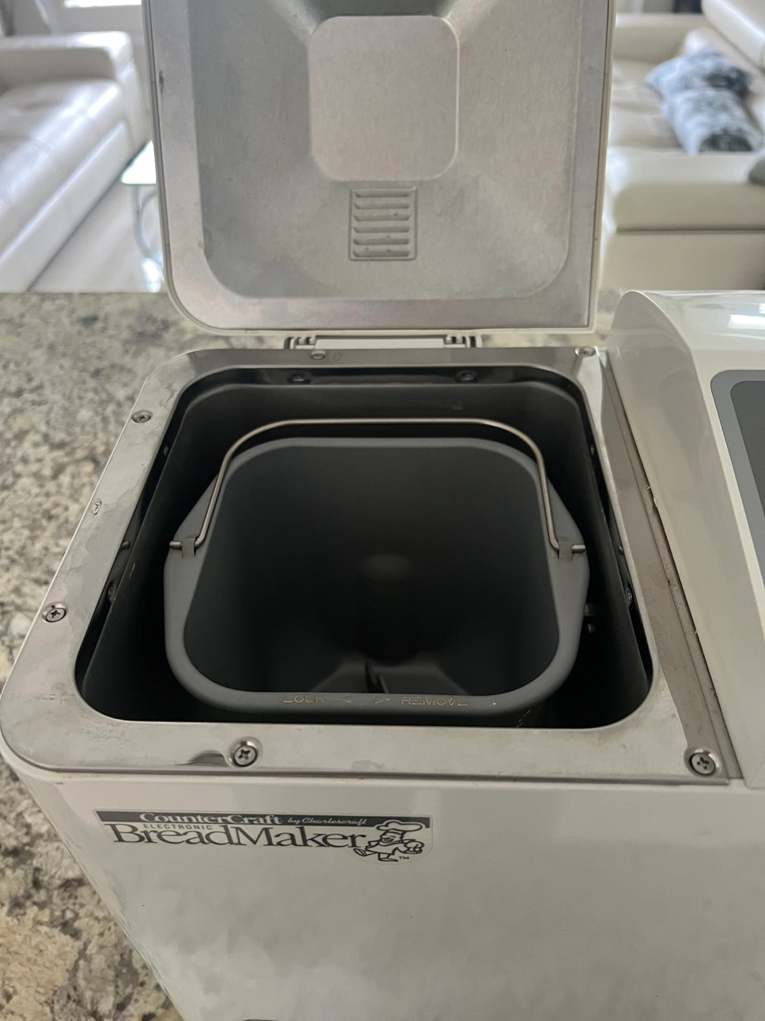 Electronic bread maker. White. Various crust colour options. Includes bread pan.