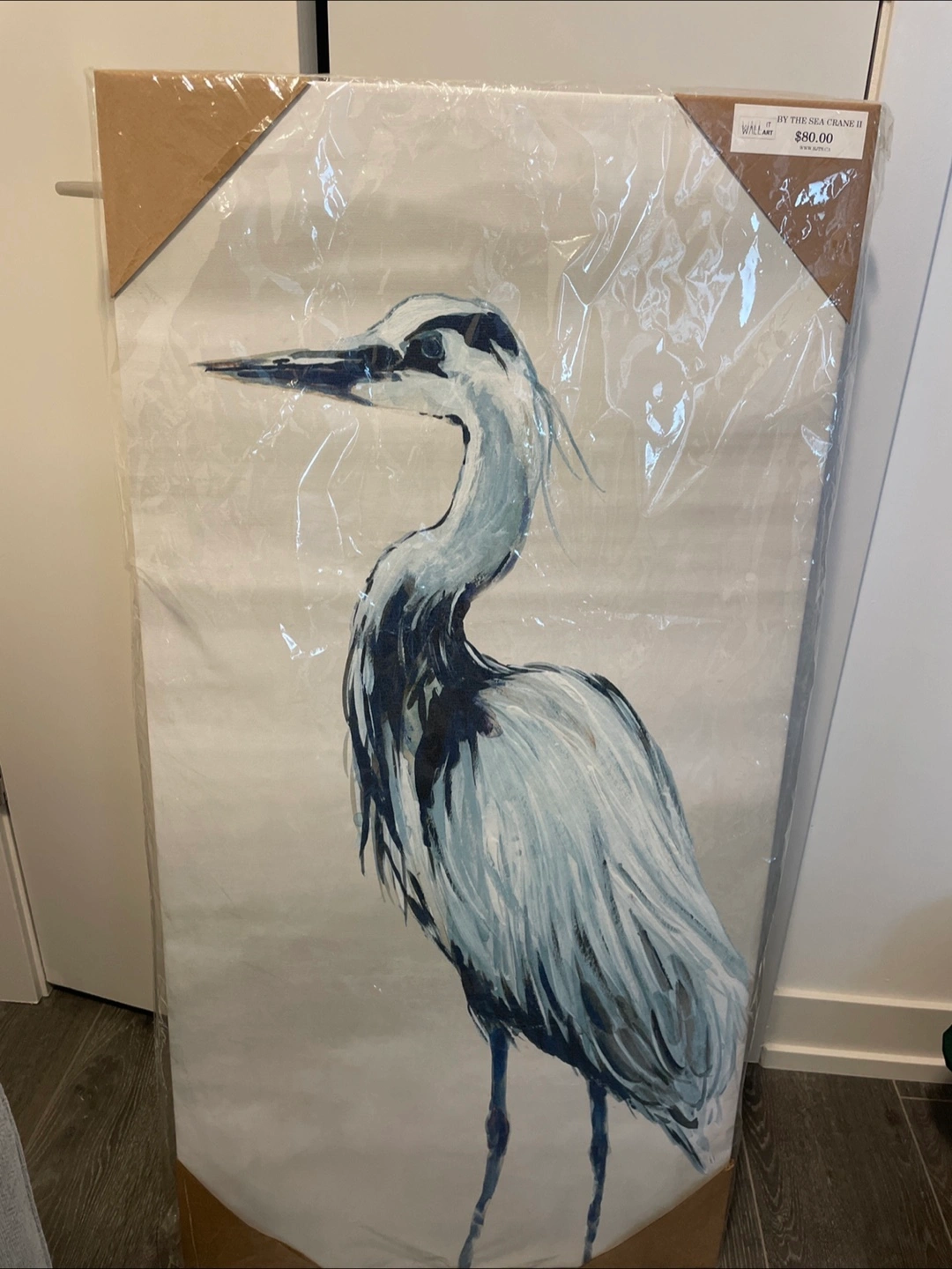 Beautiful heron artwork Canvas print Ready to hang Brand new, still in plastic. Dimensions - W20 inches H40 inches