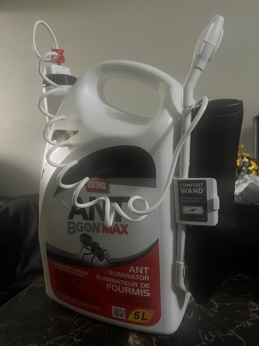 5L jug of Ortho Ant B Gon Max ant eliminator. Includes Comfort Wand for extended reach spraying. We used less than 1/8 of a cup of the solution. Works great but definitely didn’t need it all.