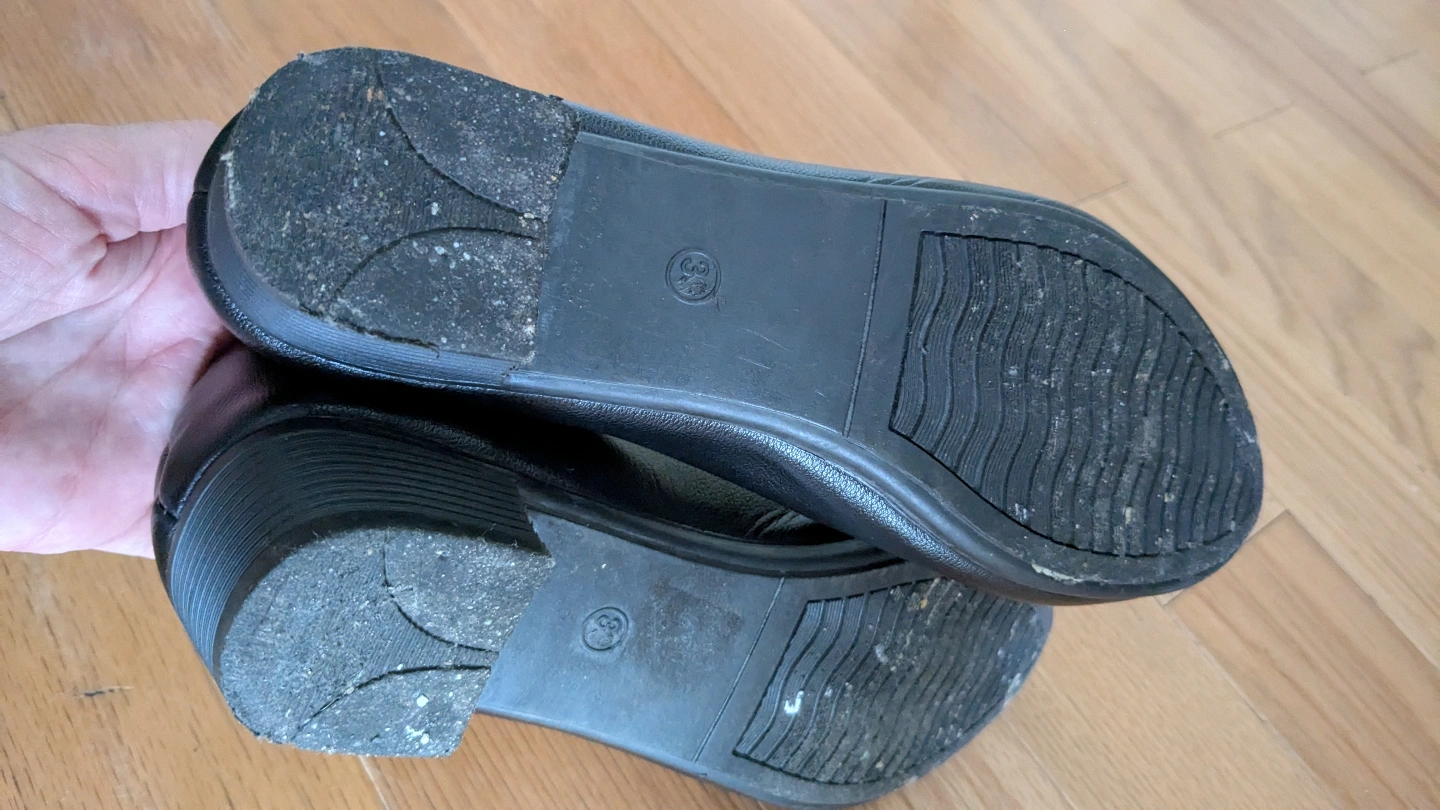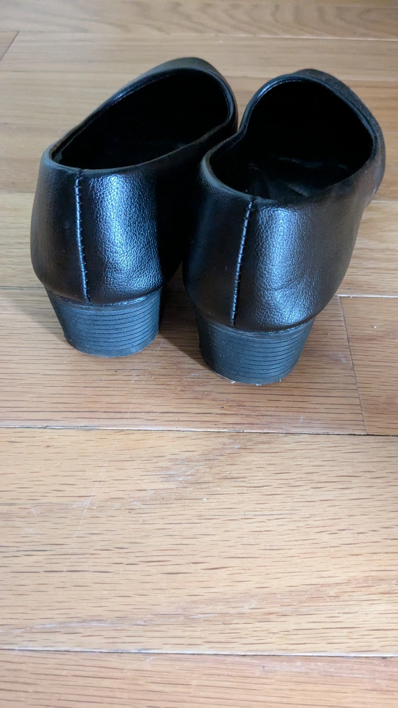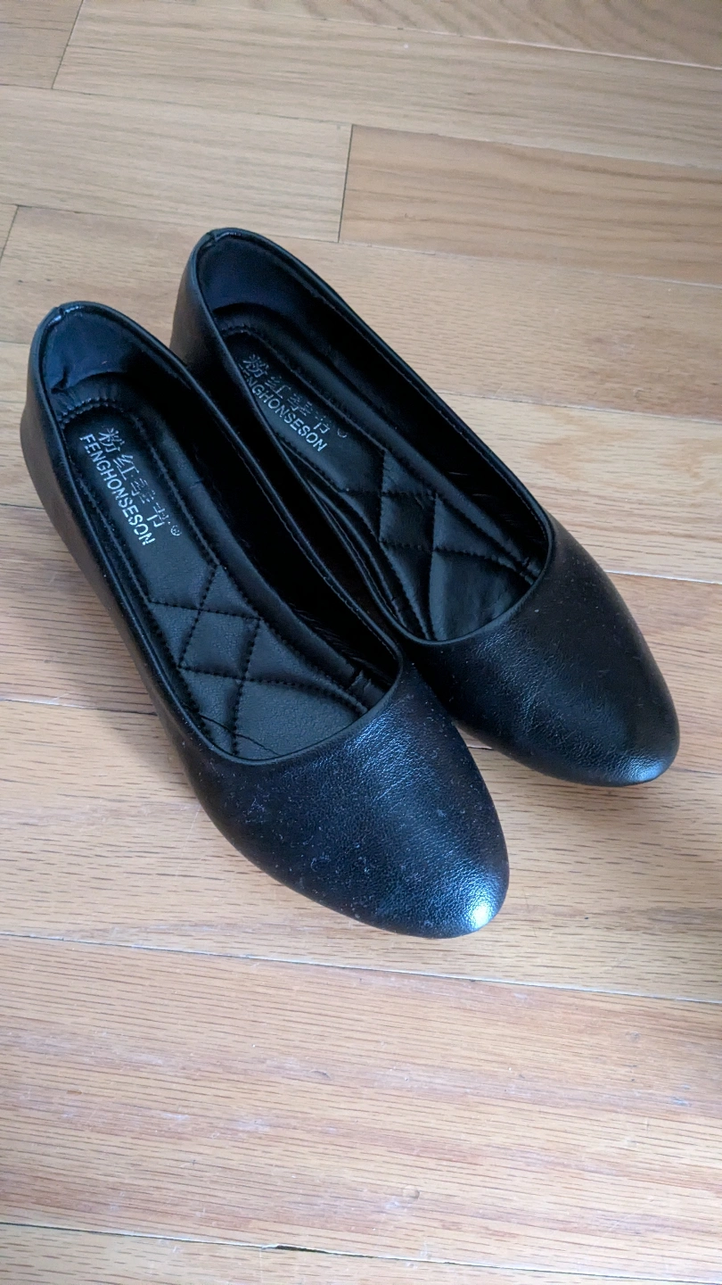 Pair of black women's flats. Low heel. Size 7.5. Slight wear on soles. Comfortable insole.