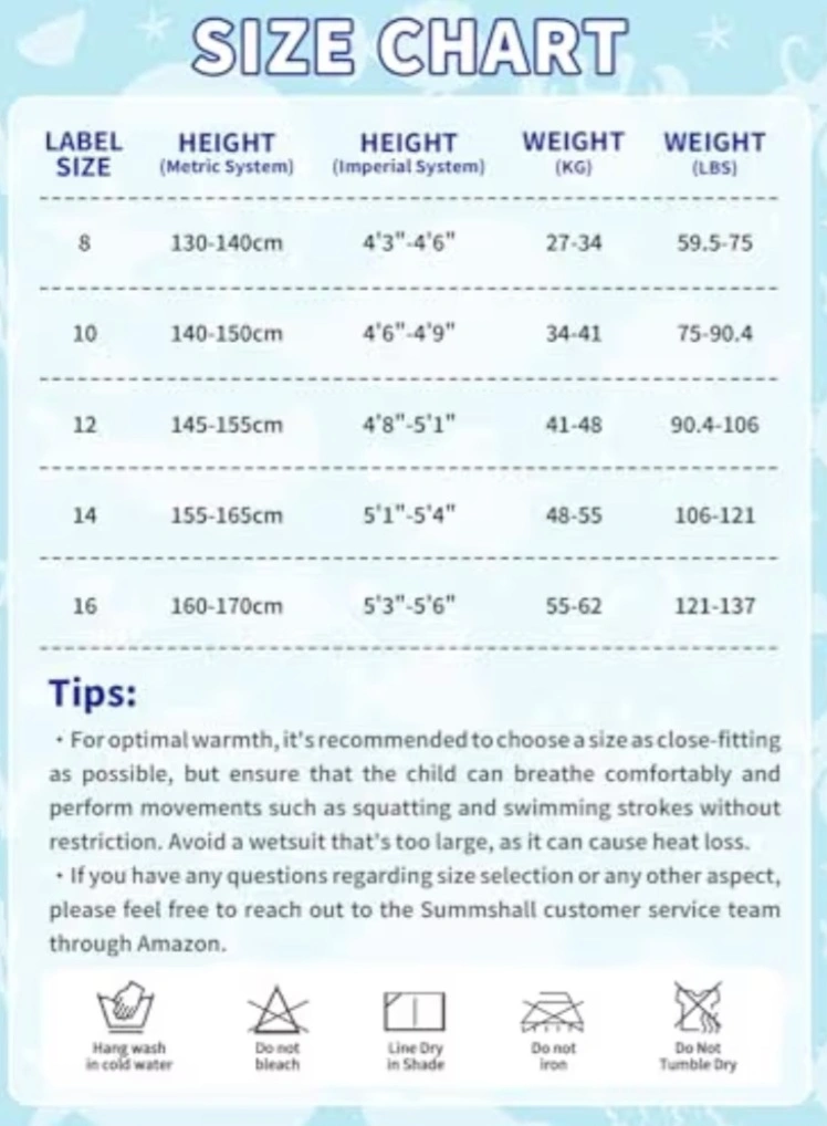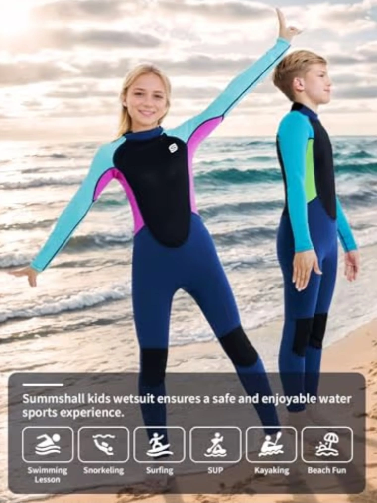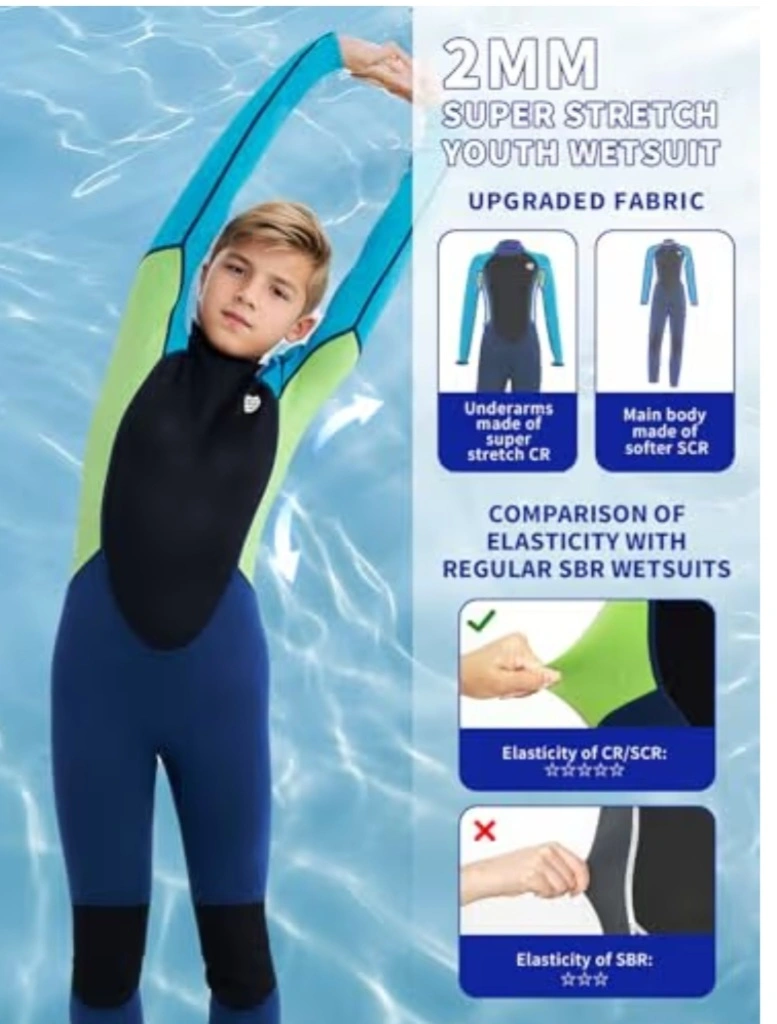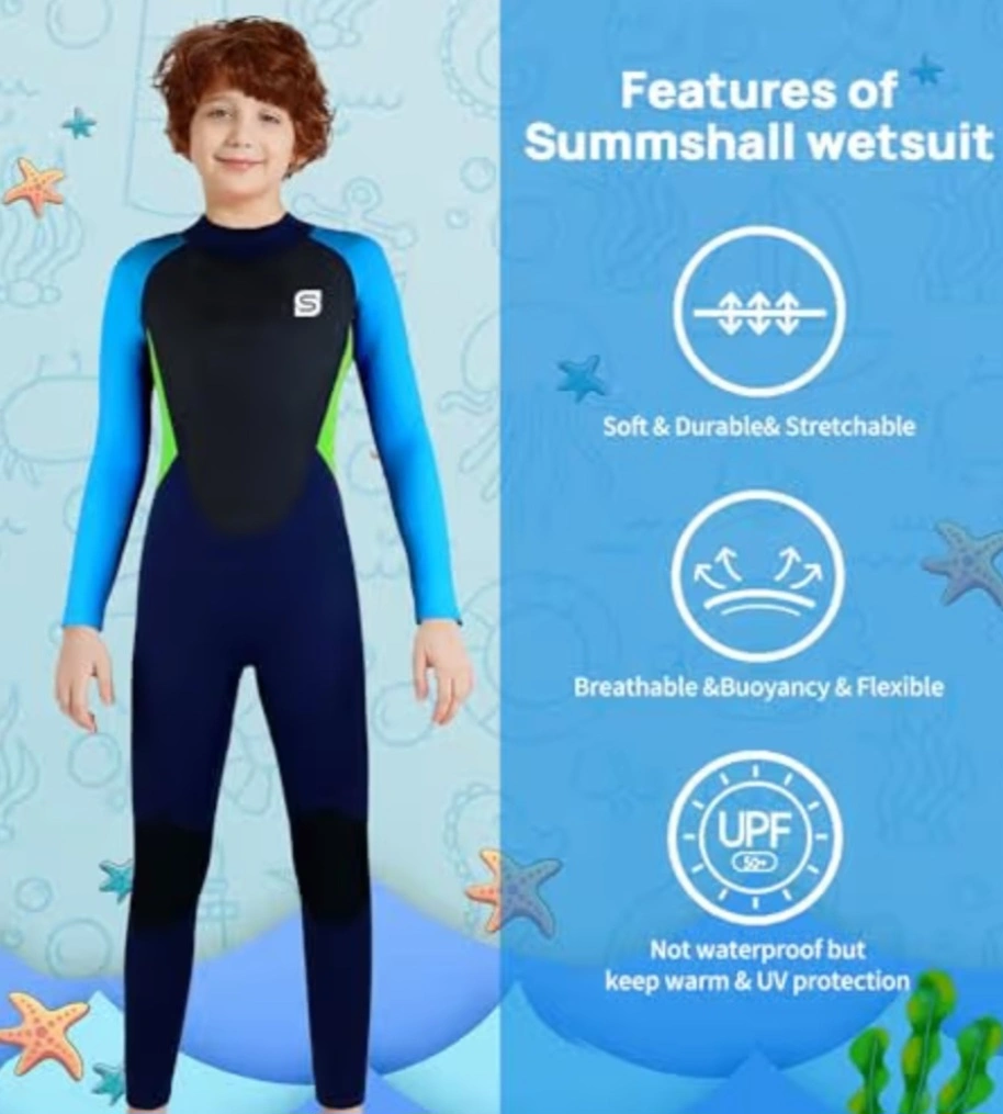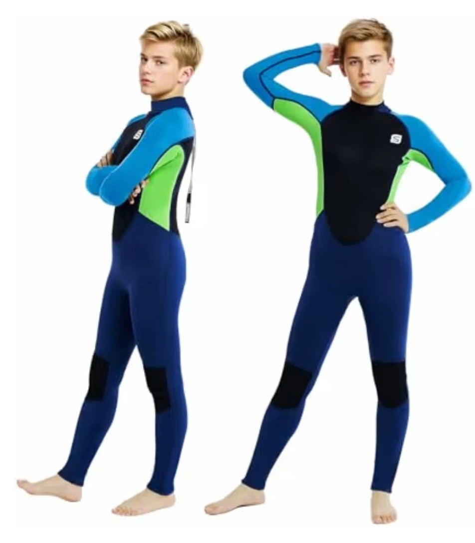 Child's full-length wetsuit. Colour-blocked design. Size 8. Suitable for swimming lessons.