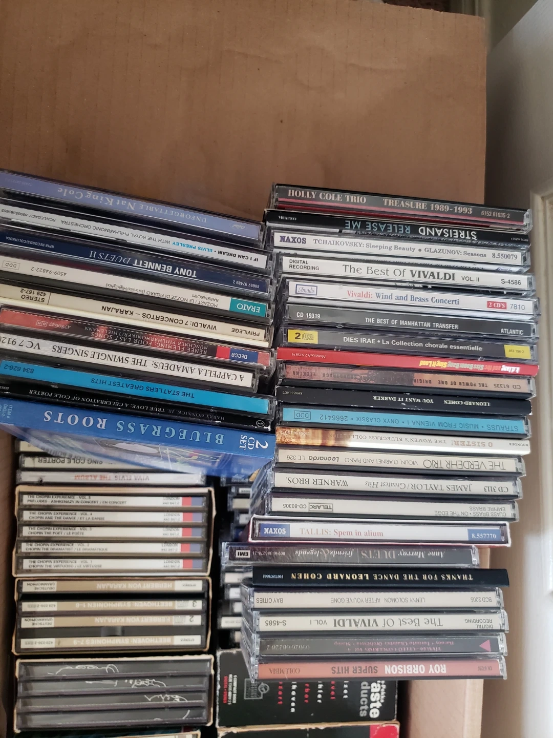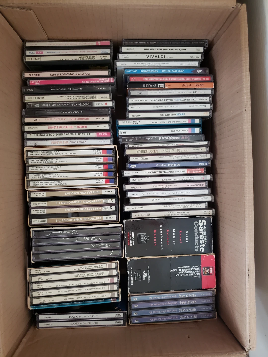 A big lot of pre-owned classical music CDs. Various artists and composers. Many different albums. Great for collectors or music lovers. must to take all the box $45