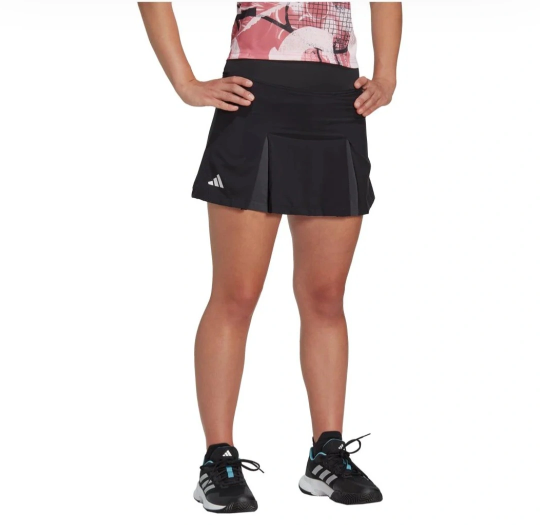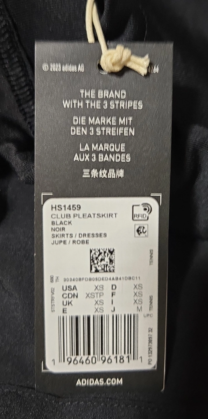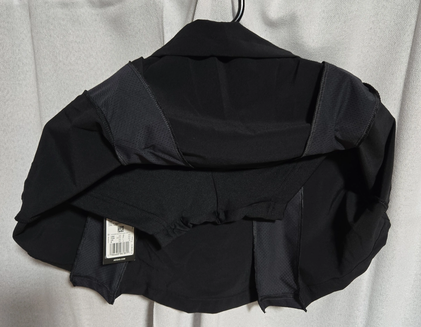 Black tennis skirt. Size XS. Pleated design. Built-in shorts. Adidas logo. Great for athletic activities.