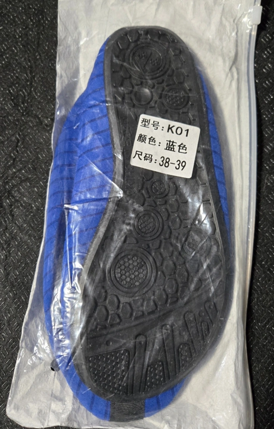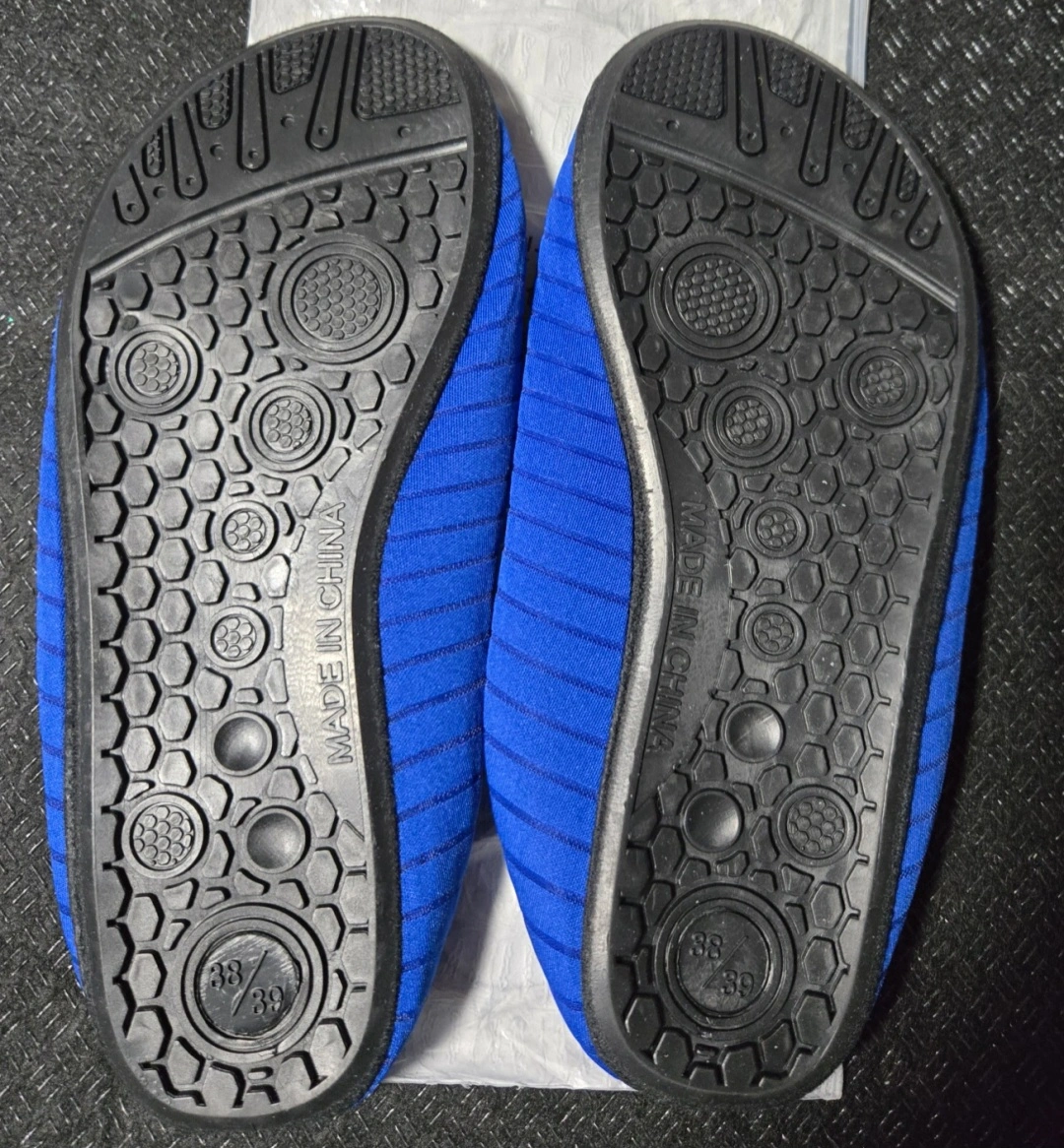 Pair of blue water shoes. Size 38/39. Great for swimming, surfing, snorkelling, and other water activities. Lightweight and easy to slip on.