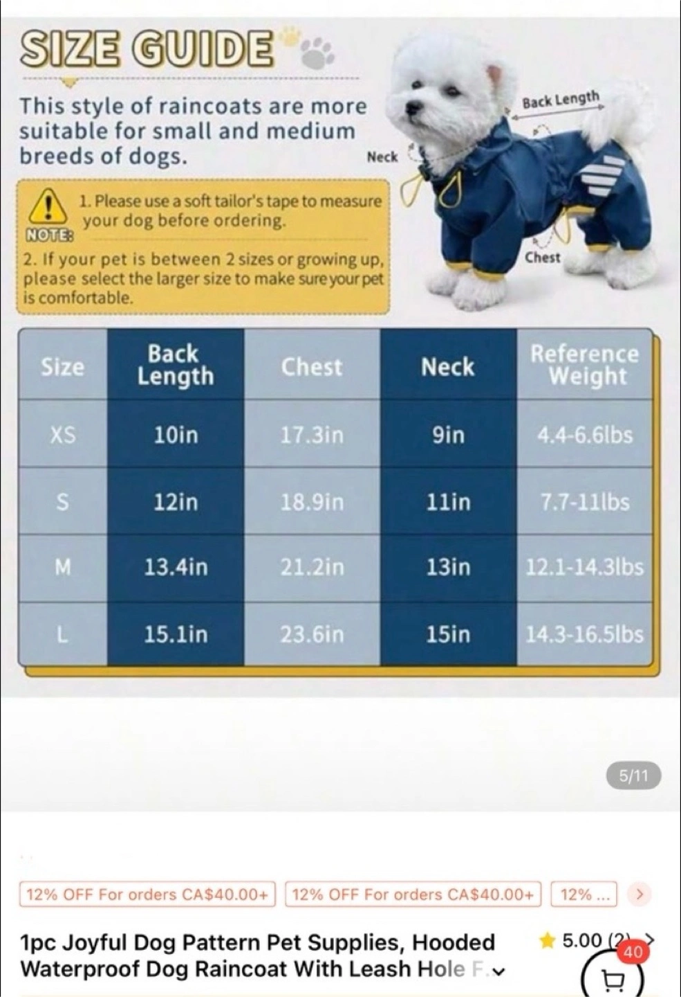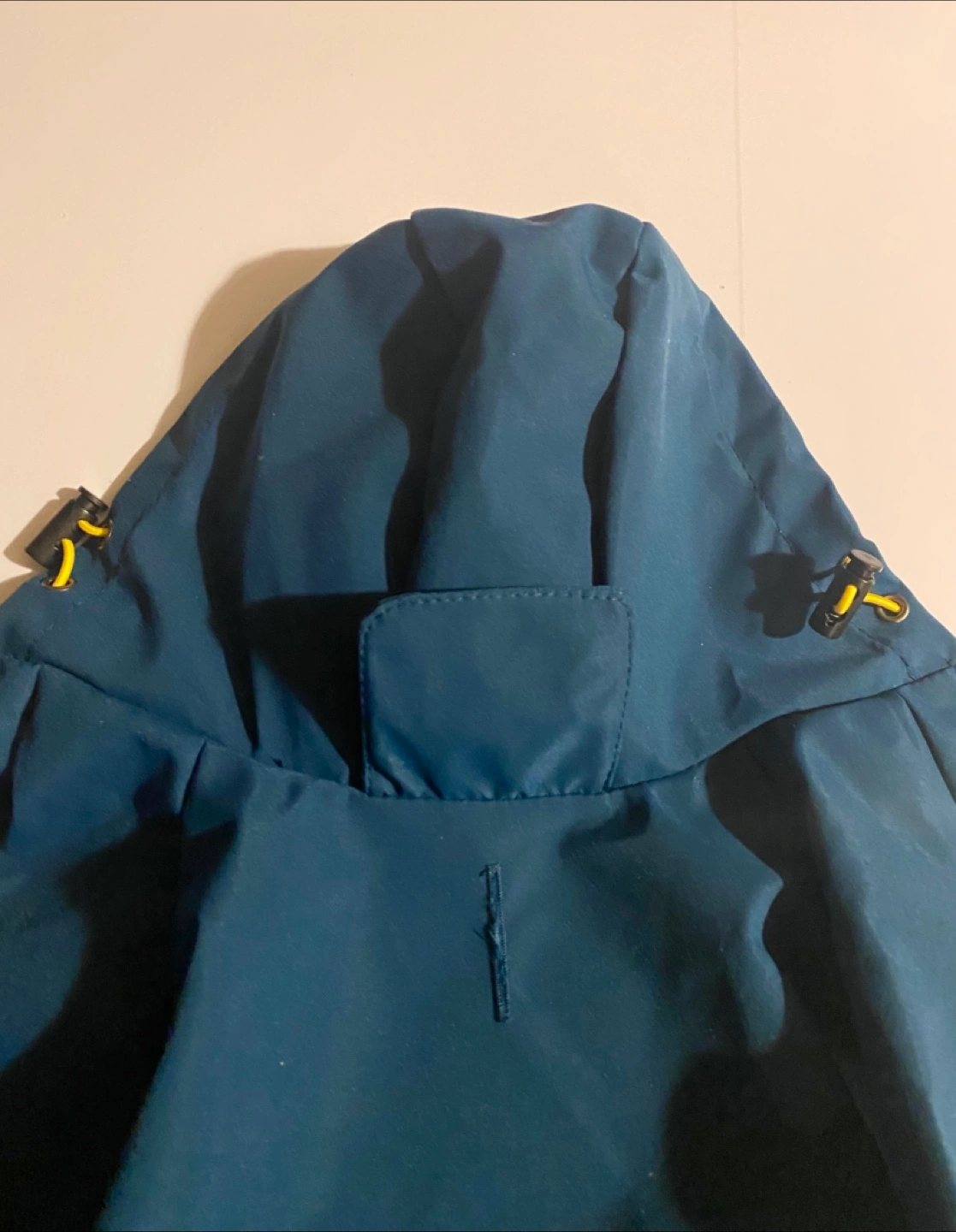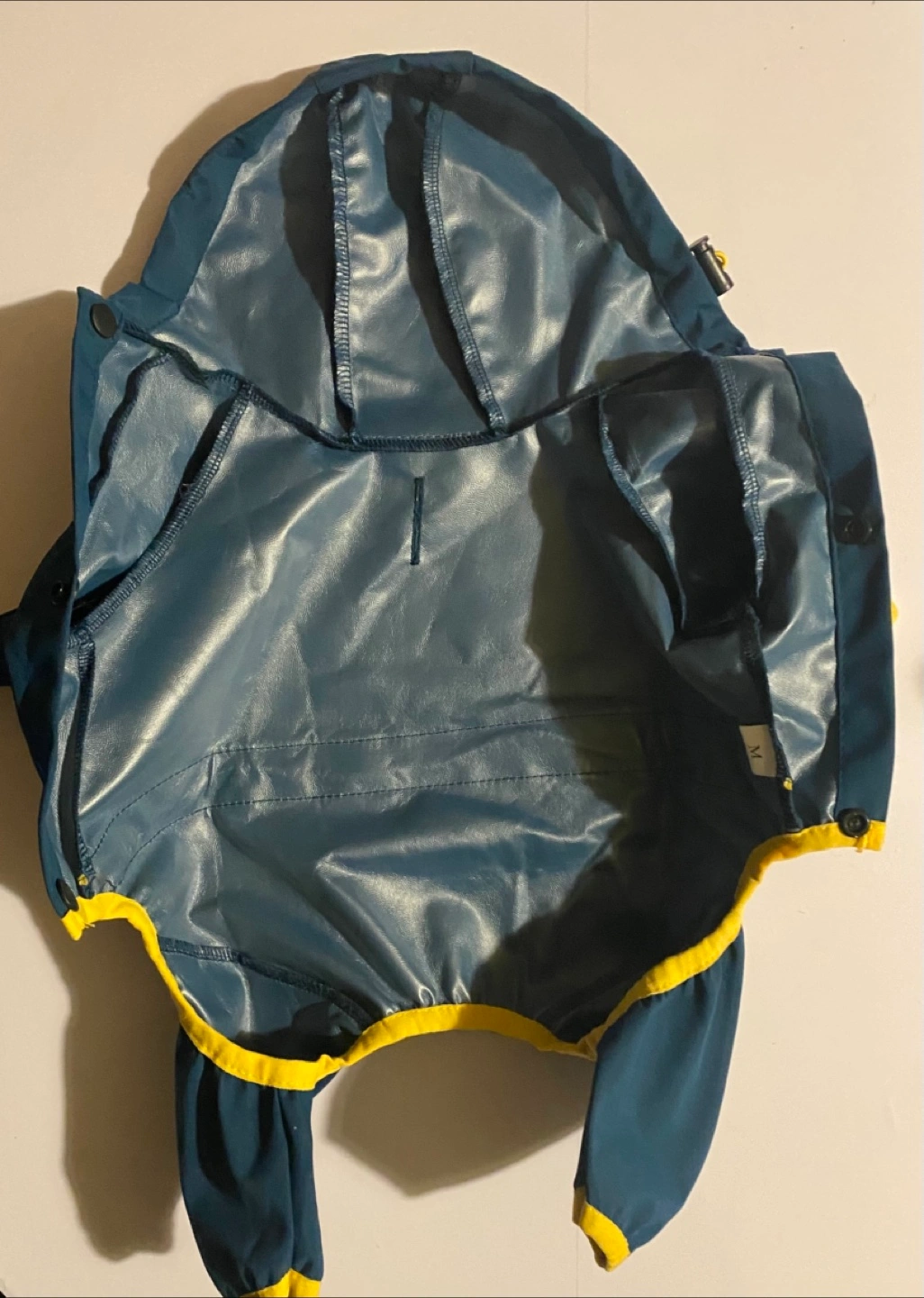Joyful Pattern Pet Supplies. Blue waterproof raincoat. Size medium. Hooded. Leash hole. Reflective strips. Yellow accents. For small dogs -see measurement chart. New just tried on dog, too small. Pick Up Cash Only Please If It’s Posted & Not Reserved It’s Still Available.
