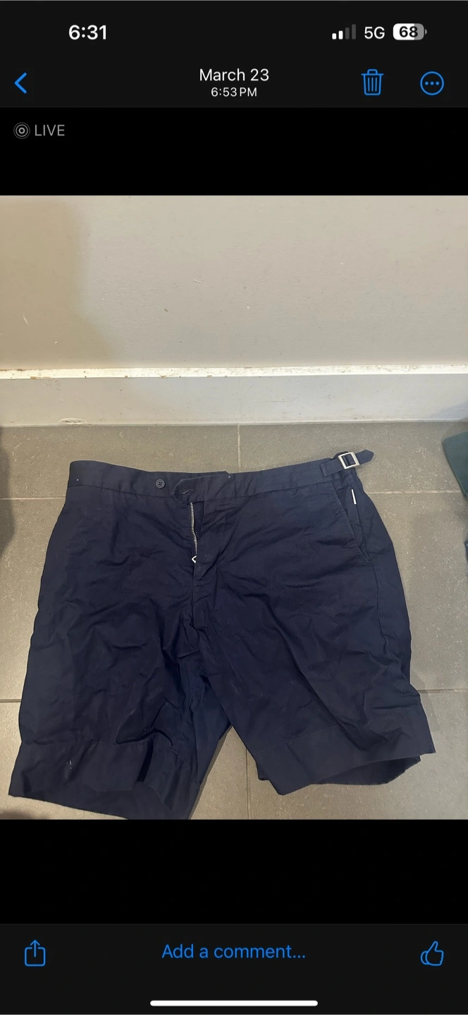 Men's navy swim shorts. Size 36. Made in Portugal. Features a buckle.
