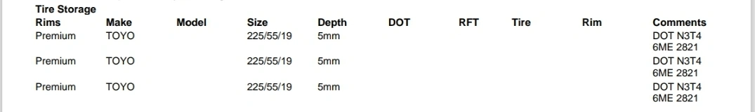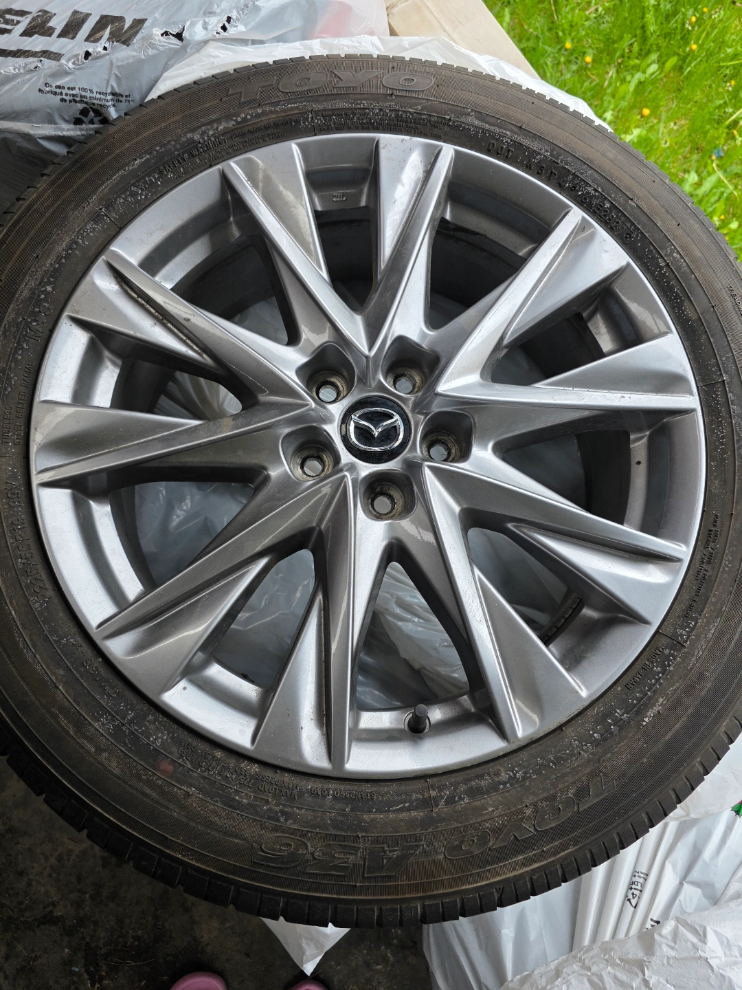 Set of 4 Mazda 2021 CX5 Toyo A36 All Season Tires P225 / 55R19 99V - in great condition. 19" with 5mm of tread, lots of life left in them. Comes with the Mazda rims. Stored at Mazda dealership wrapped up so they're in great condition. Pick up only