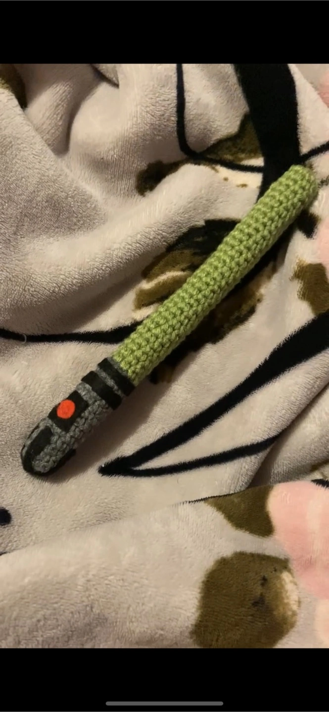 I am selling a Star Wars-themed crocheted amigurumi Yoda lightsaber, handmade with care. By the seller. This unique item is perfect for any Star Wars fan or collector! It's a fun, soft, and safe alternative to plastic lightsabers, ideal for kids and adults alike. Adorable crocheted lightsaber amigurumi Green and grey. Perfect gift for Star Wars fans. Unique and collectible. Condition- New Approximately measurements- Length- 9 1/2 inches Width- 2 inches Cash Payment Only & Pick up Only No Refunds / Exchange No try ons, No trading, No holds. All purchases are Finally Sale From a Smoke Free home Fast pick up Confirmed Price-$15 Cash only May the Force be with you, and remember, if this ad is up, the lightsaber is still available! See more of my creations @violetuniquecollection On Facebook or Instagram Thank you for supporting a small business and shopping handmade!