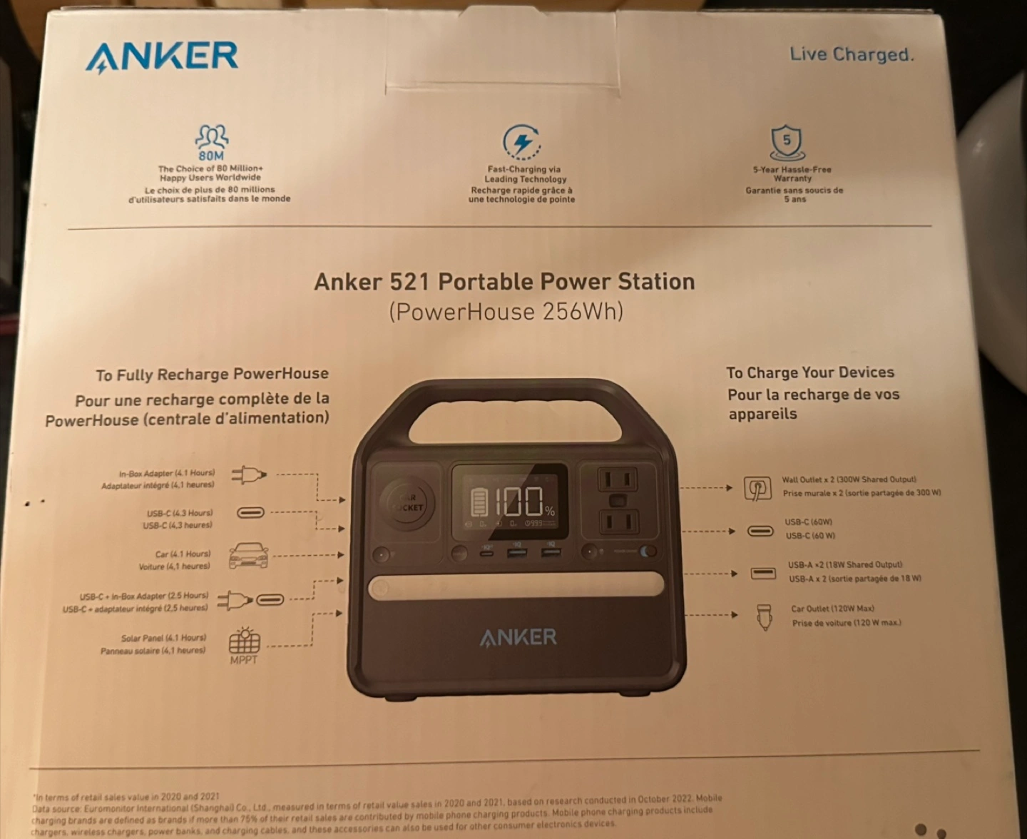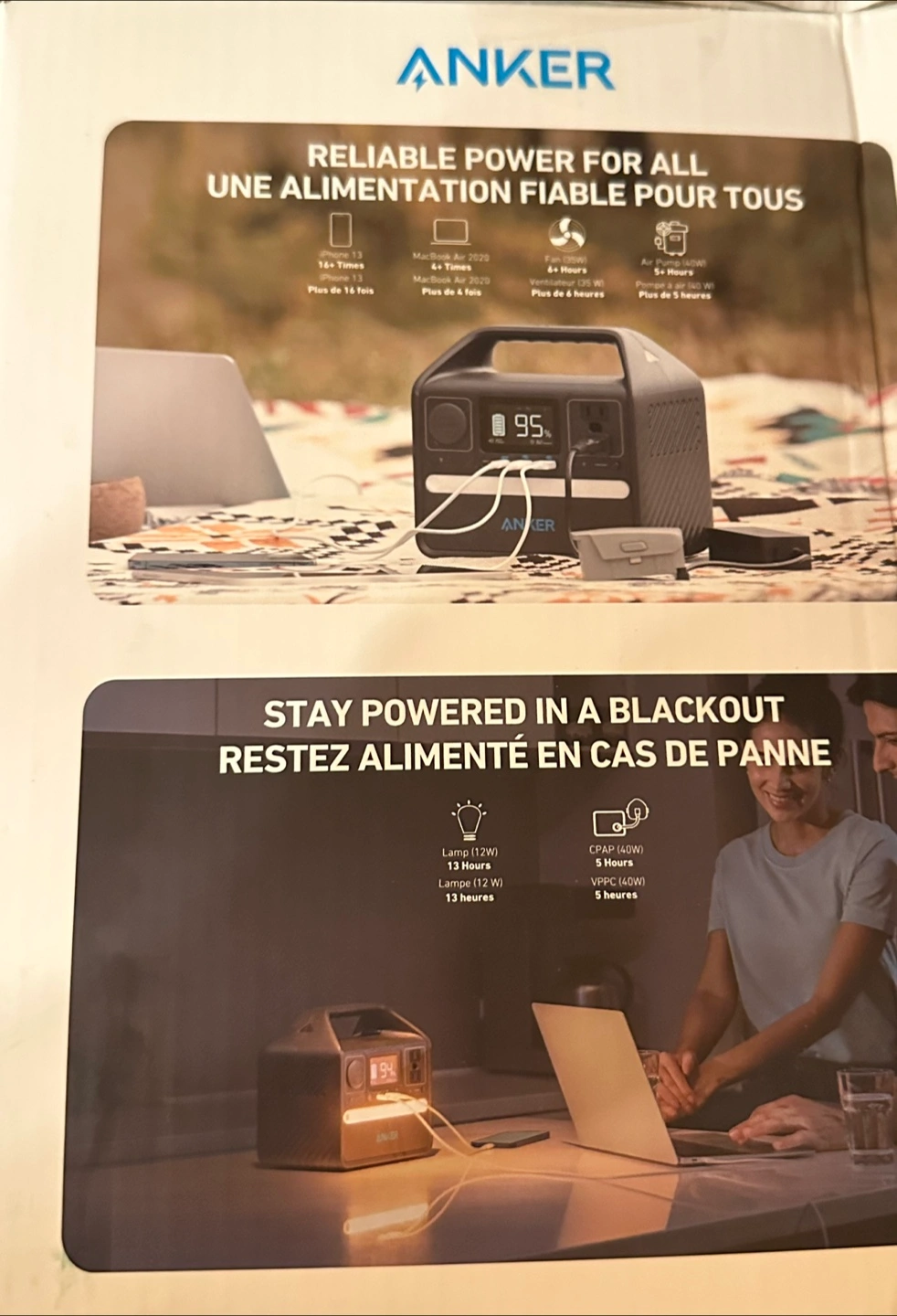 Anker portable power station. Reliable power for all your devices. Charges multiple devices simultaneously. Long lifespan with superior safety. Includes multiple output ports. Great for camping or power outages.