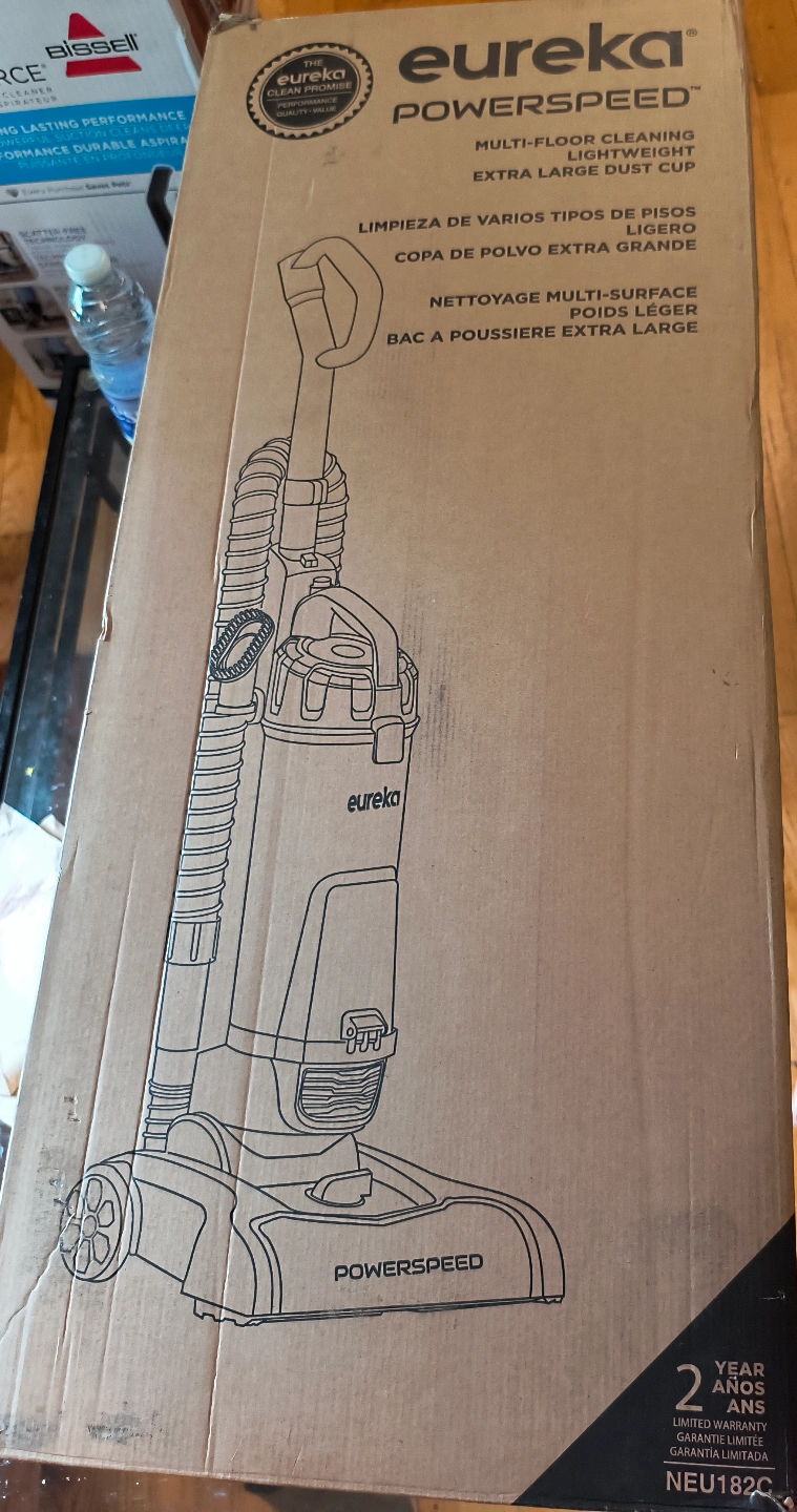 New in box. Multi-floor cleaning. Lightweight. Extra large dust cup. Includes various attachments.