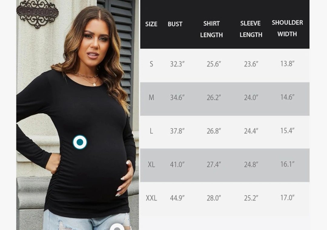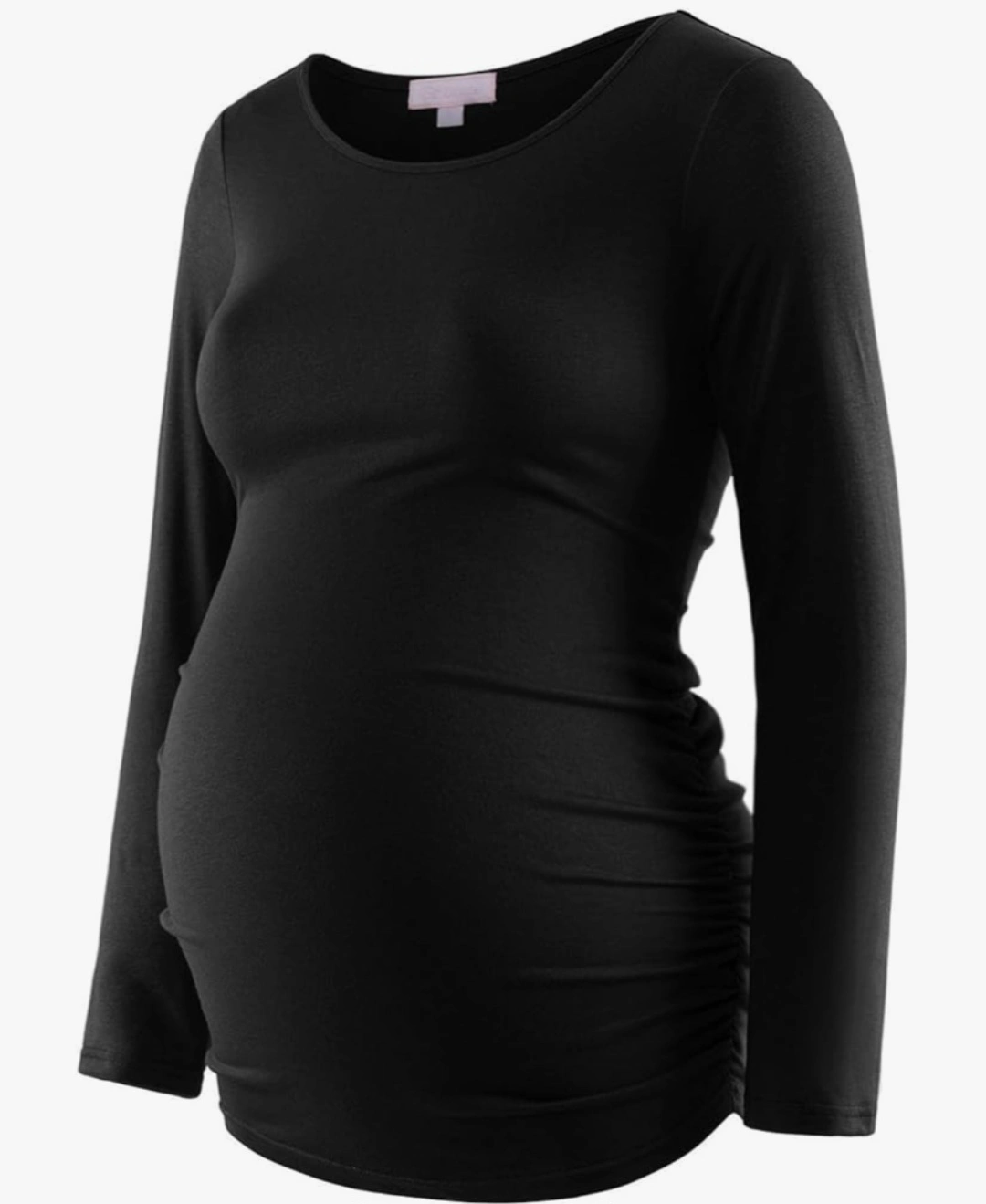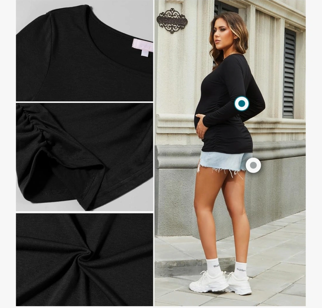 Maternity long-sleeve shirts. Ruched sides. Soft material. Available in black and grey both in size L.
