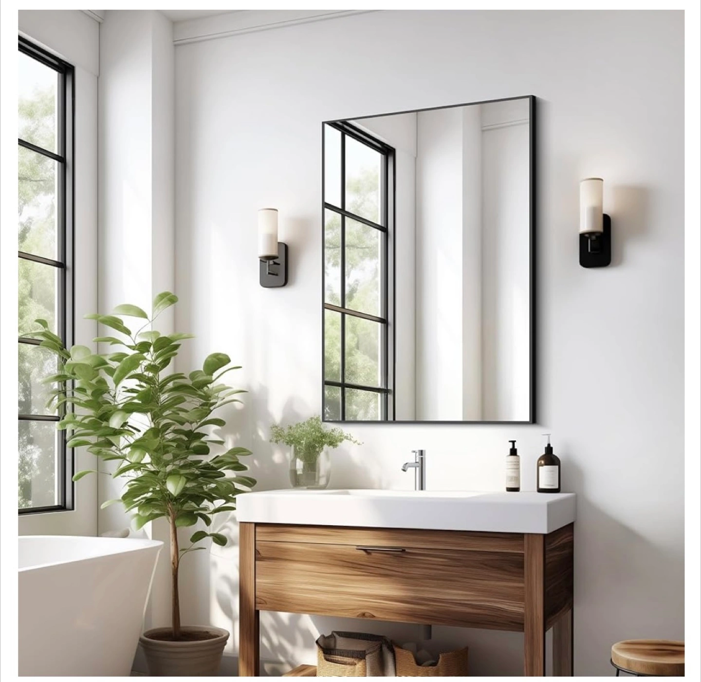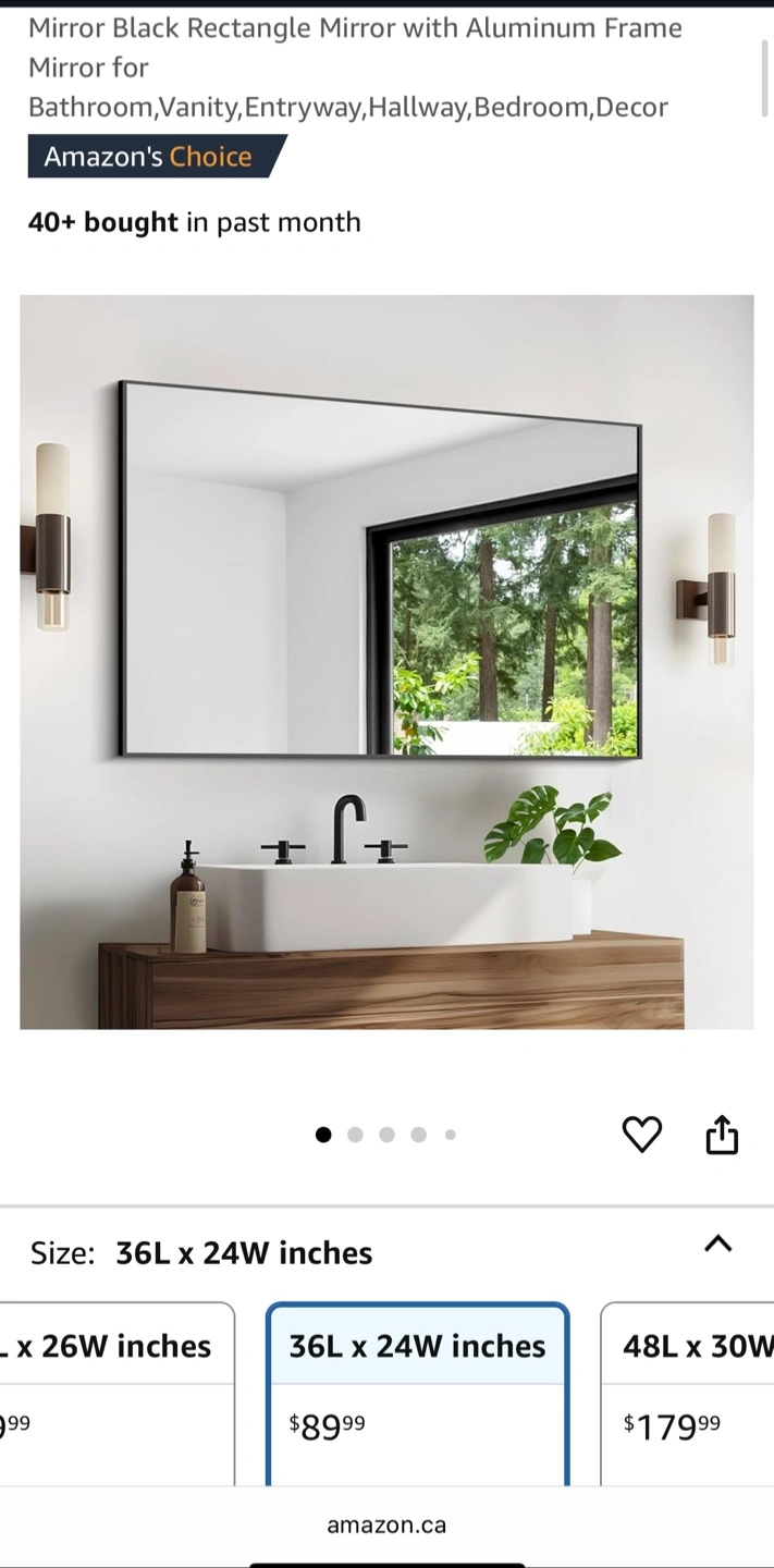 Black Mirror w Metal Frame 24x36” New in Box. Small Scratch as shown in photos. Hang Horizontal or Vertical. Includes Hardware. $45 firm.
