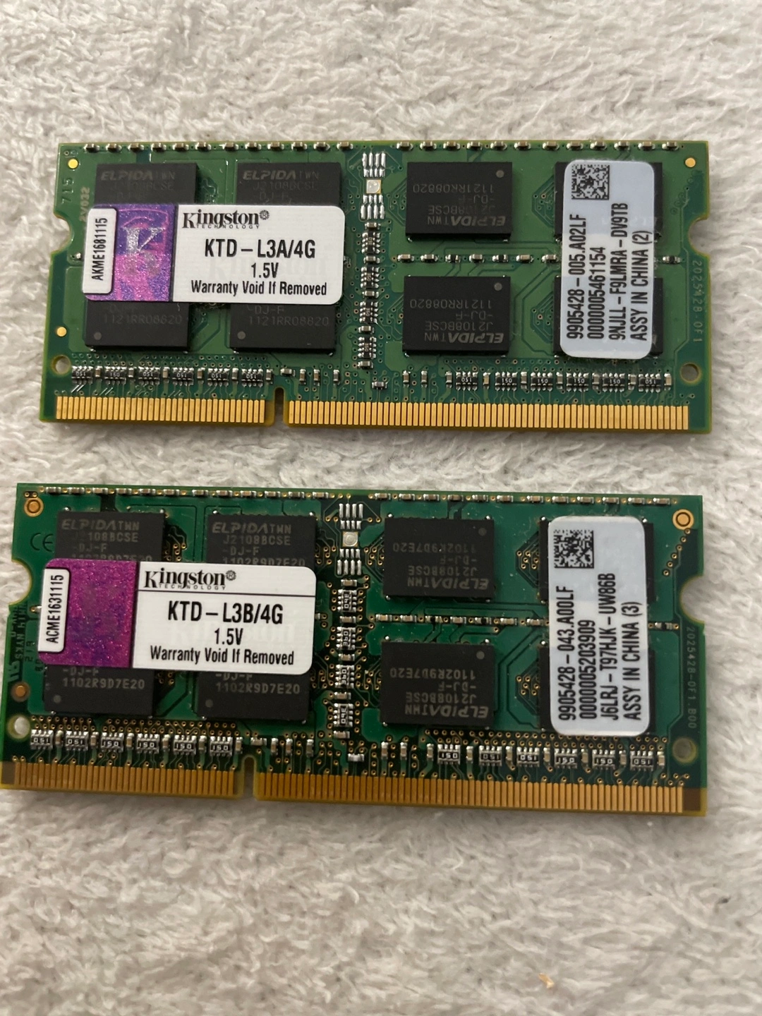Pair of Kingston KTD-L3B/4G 1.5V RAM modules. Used condition. Warranty void if removed.
