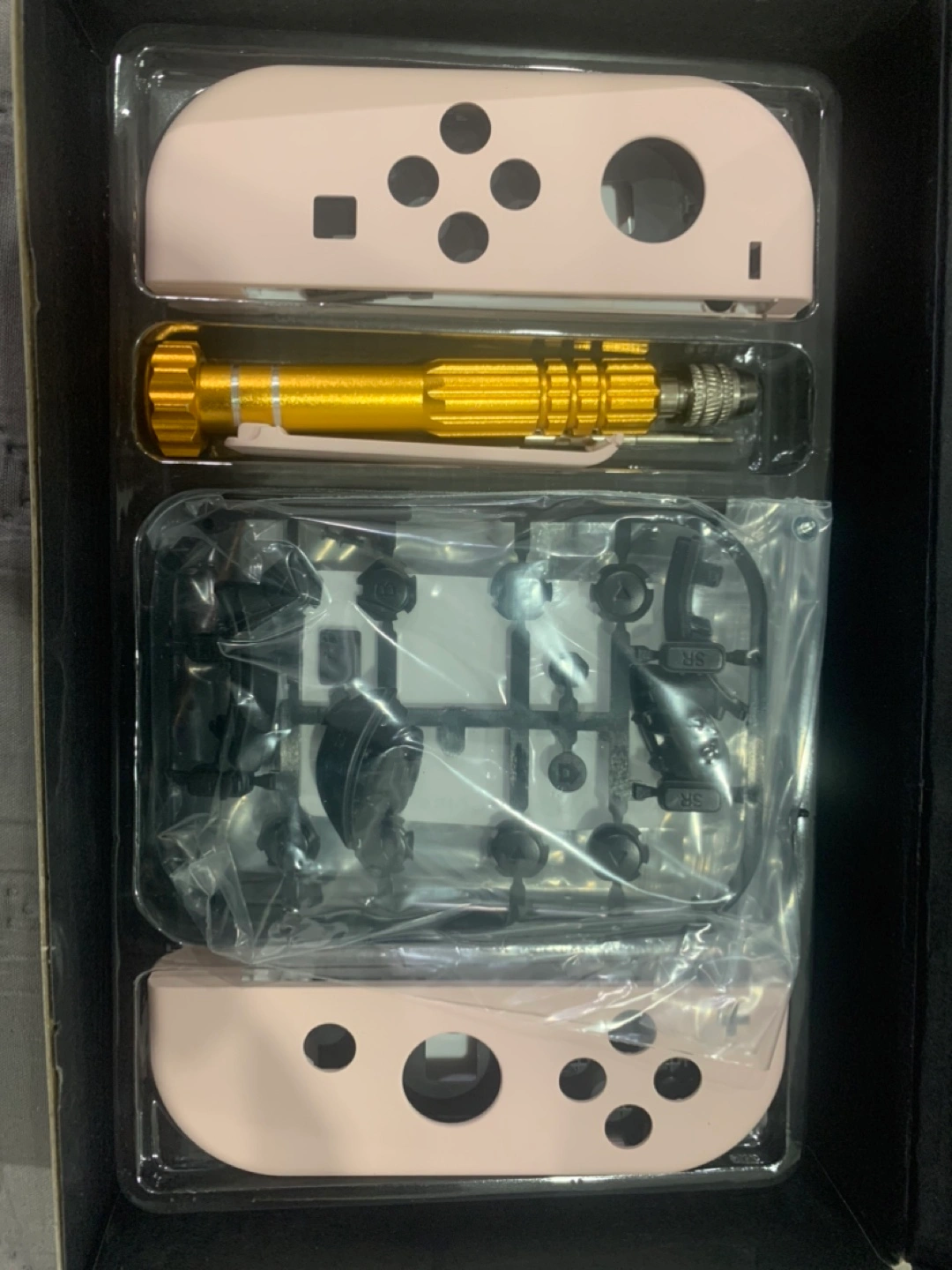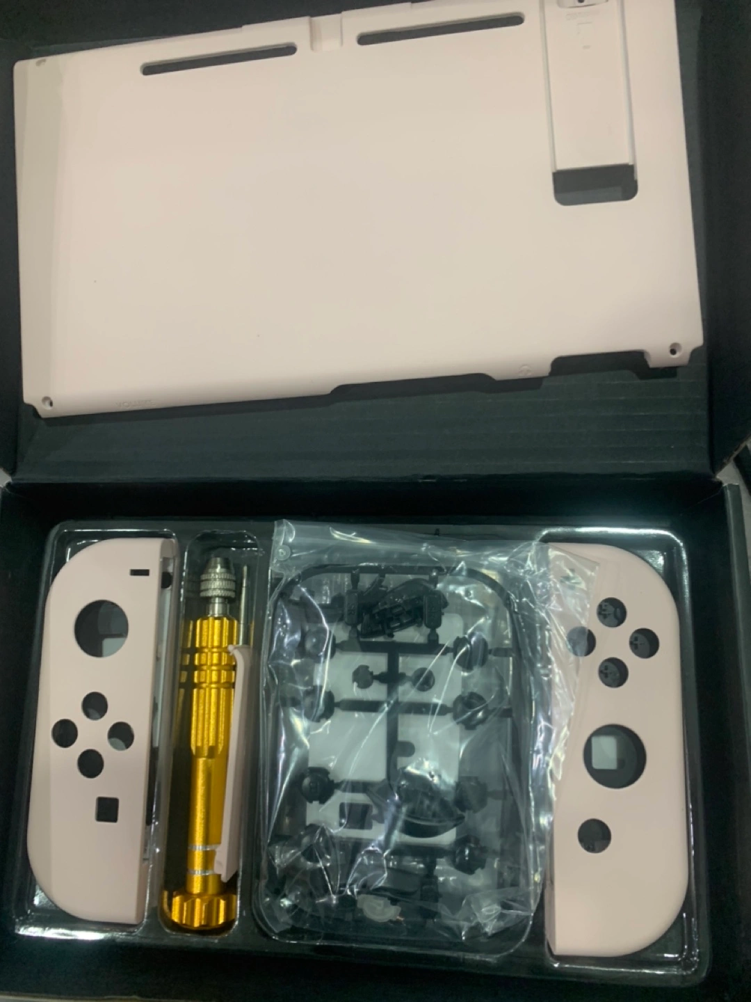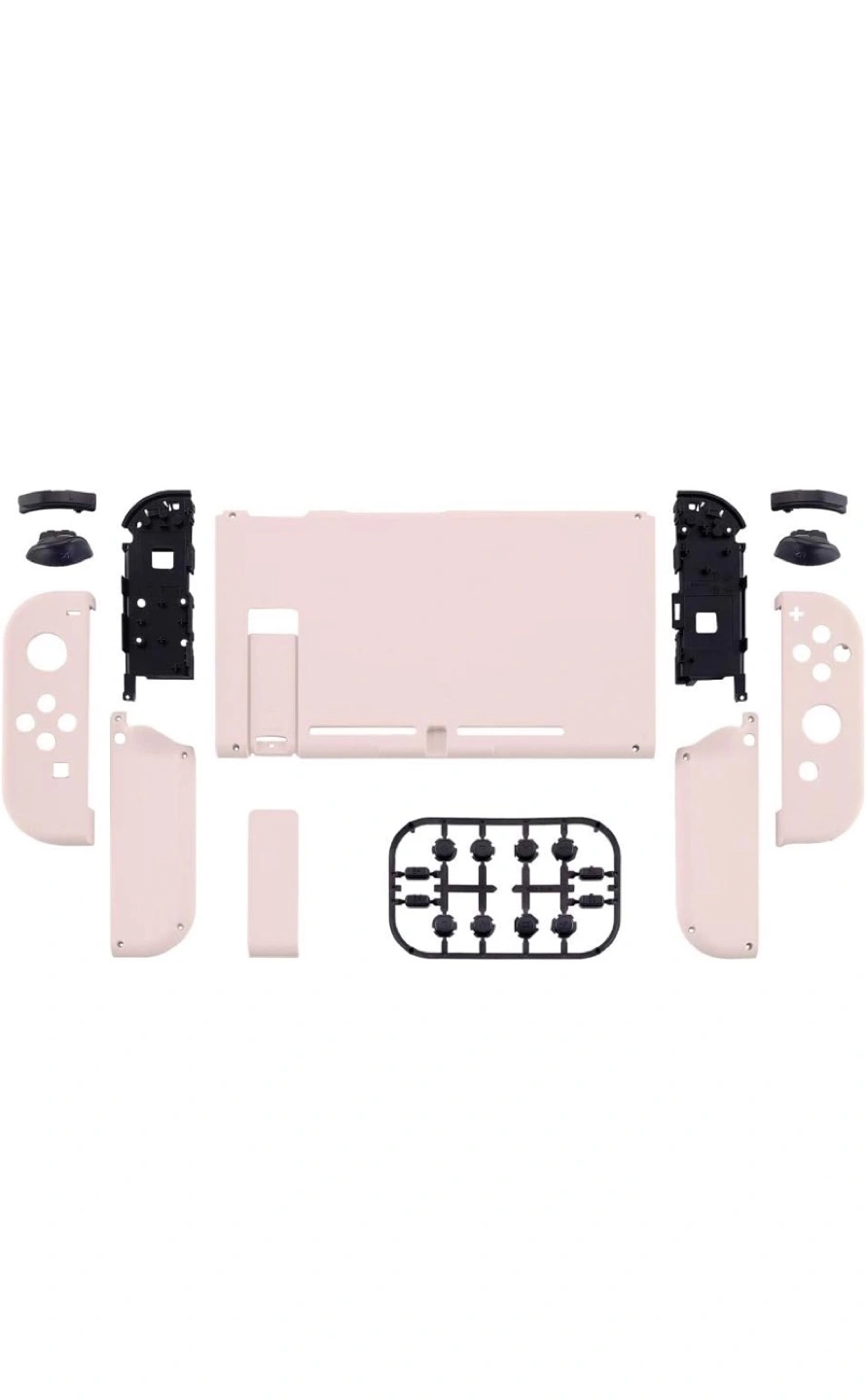 New Nintendo Switch housing set. Includes faceplates, buttons, and joy-con shells. Comes with all necessary tools for installation. Pretty pink colour.