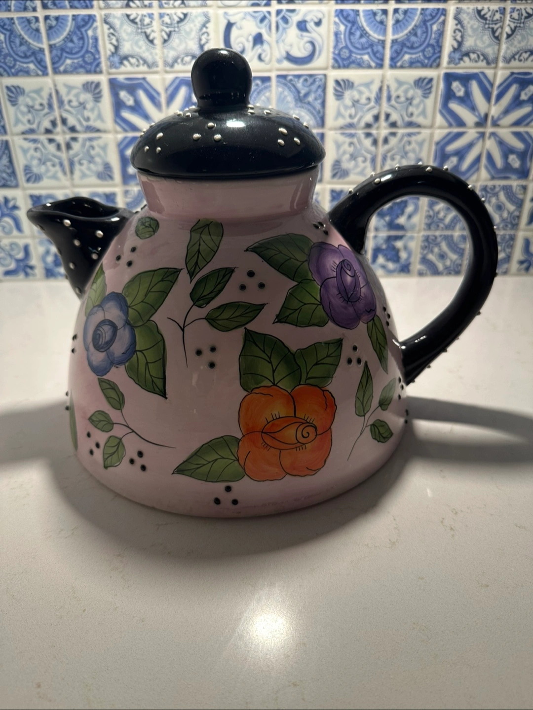Large teapot with cheerful hand-painted floral design. Cash Payment. Pick-Up in Pickering (Brock & 401).