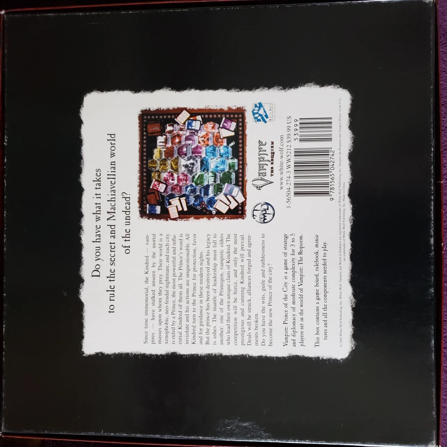 Modern Gothic board game. A game for 3-5 players. Includes game board and components. Collectible.
