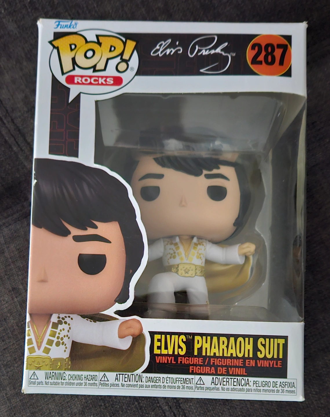 New Funko Pop! Rocks Elvis Presley in his iconic Pharaoh suit. Collectible vinyl figure, MINT in Box. Number 287 in the series. Never opened. Located near King St W & Dufferin St. See my other listings.