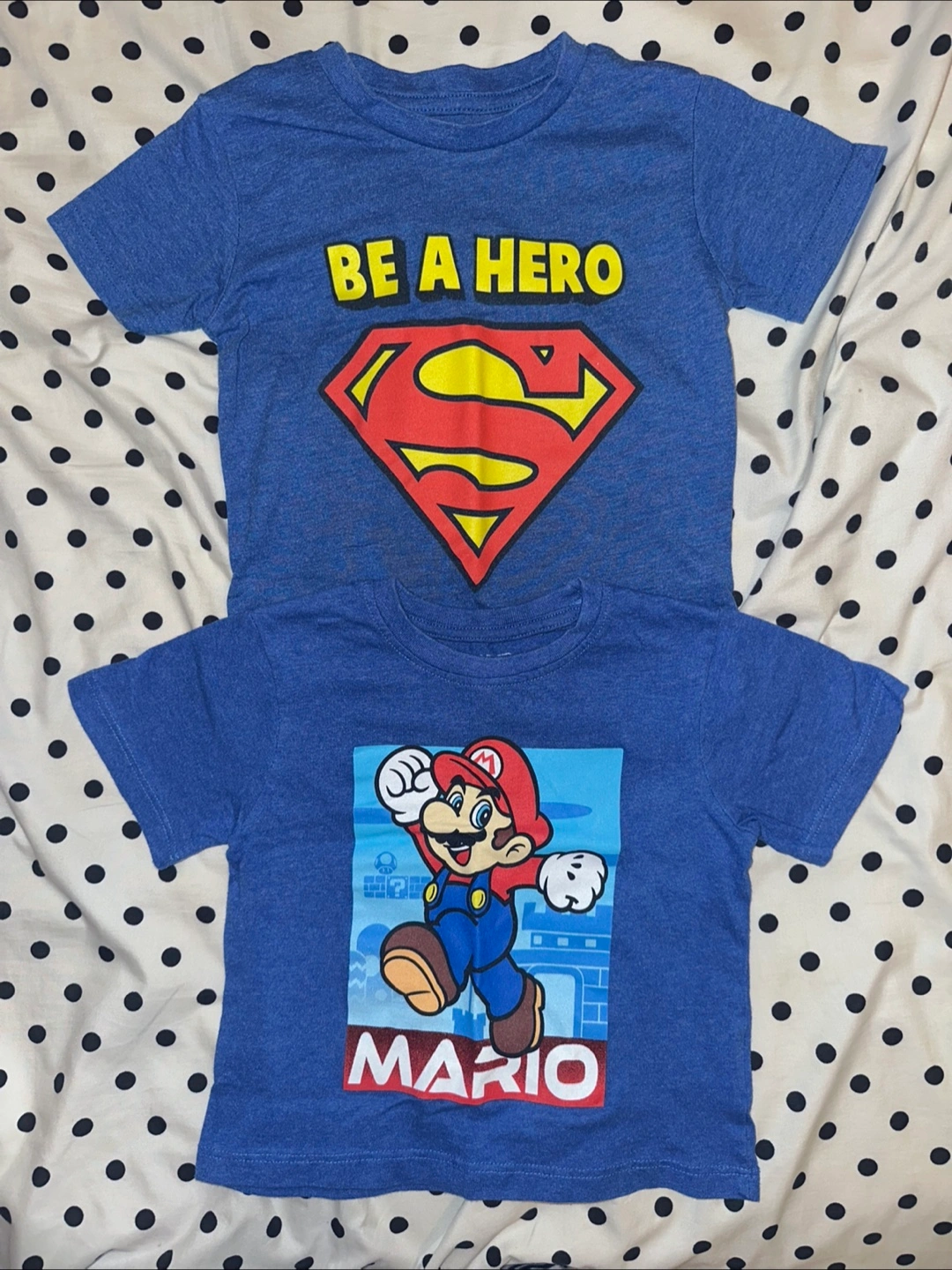 🚨MIX AND MATCH WITH OTHER LISTING🚨 Bundle of three toddler t-shirts. Superman and Mario designs on blue shirts. Snoopy on a skateboard on a red shirt. Great for fans of superheroes and cartoons. Sizes may vary slightly. 👉5 FOR $15👈 Pick up @ Toronto Western Hospital OR any TTC subway line