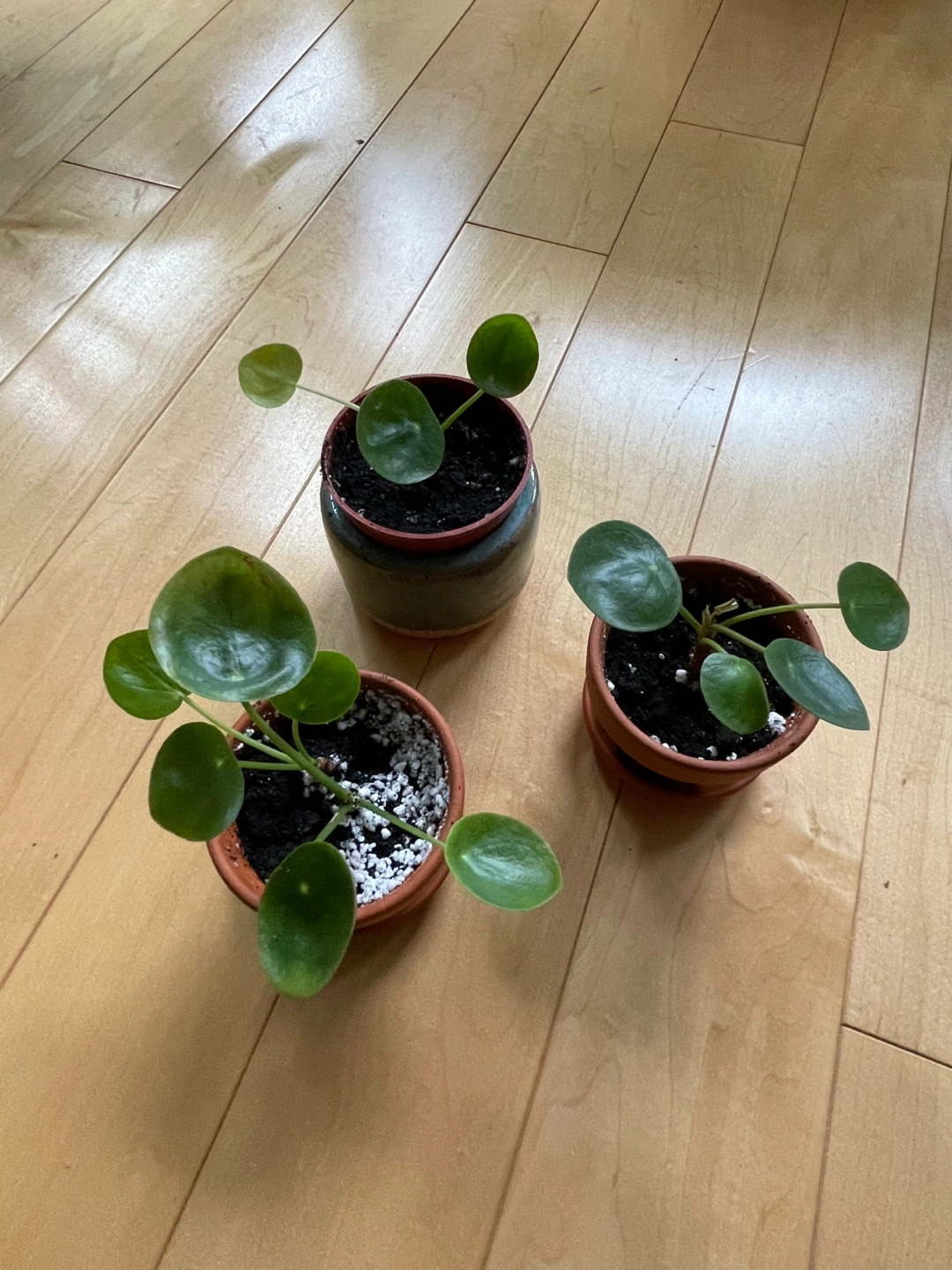 Three healthy baby Pilea plants in small pots. Take one, two or all three - $2 each or all for $5 . Cash only please and pick up at keele subway station