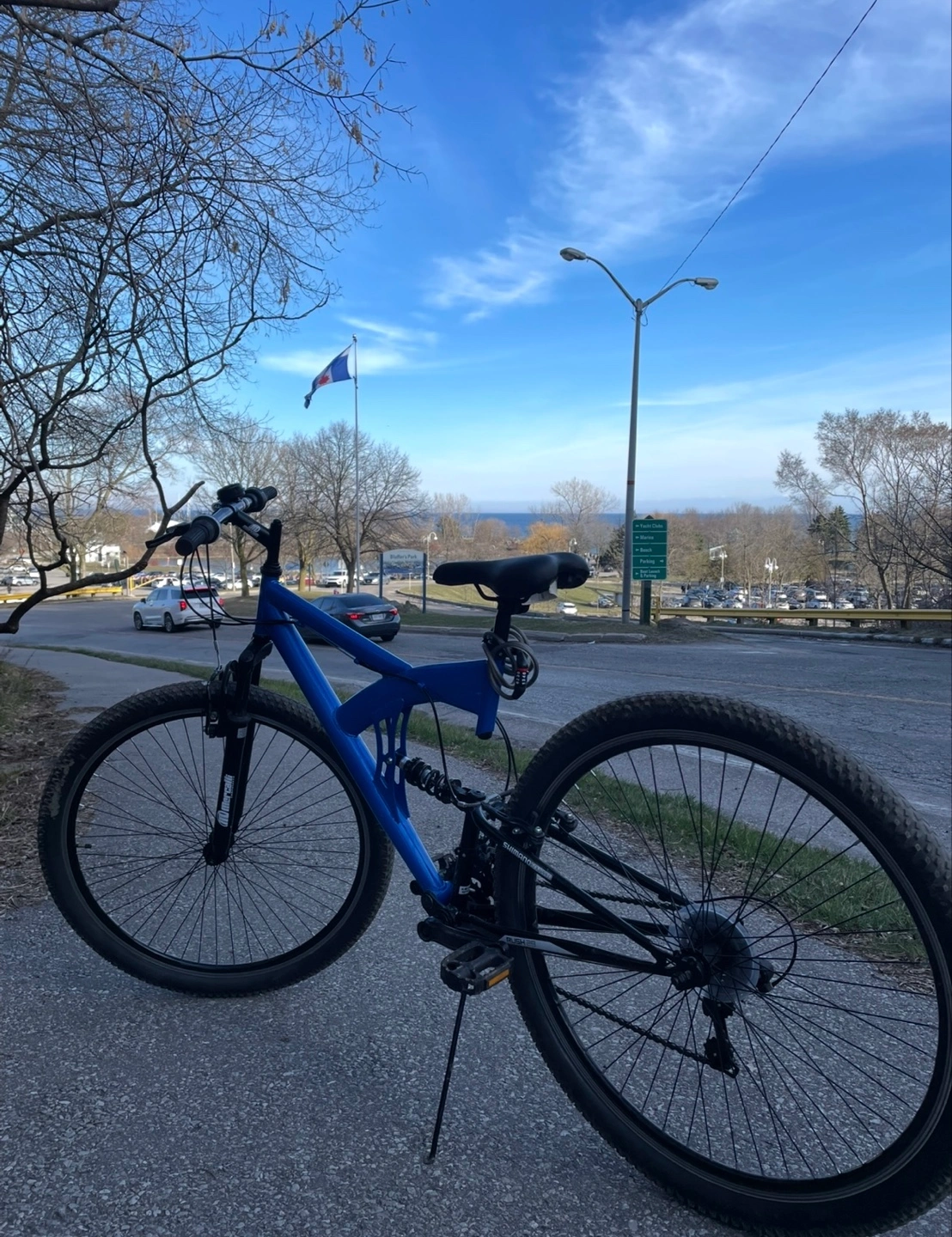 Full suspension mountain bike. Blue frame, black components. Good condition. 29er. Supercycle removed stickers “clean look” With front and back lights Meetup 3132 eglinton avenue walmart