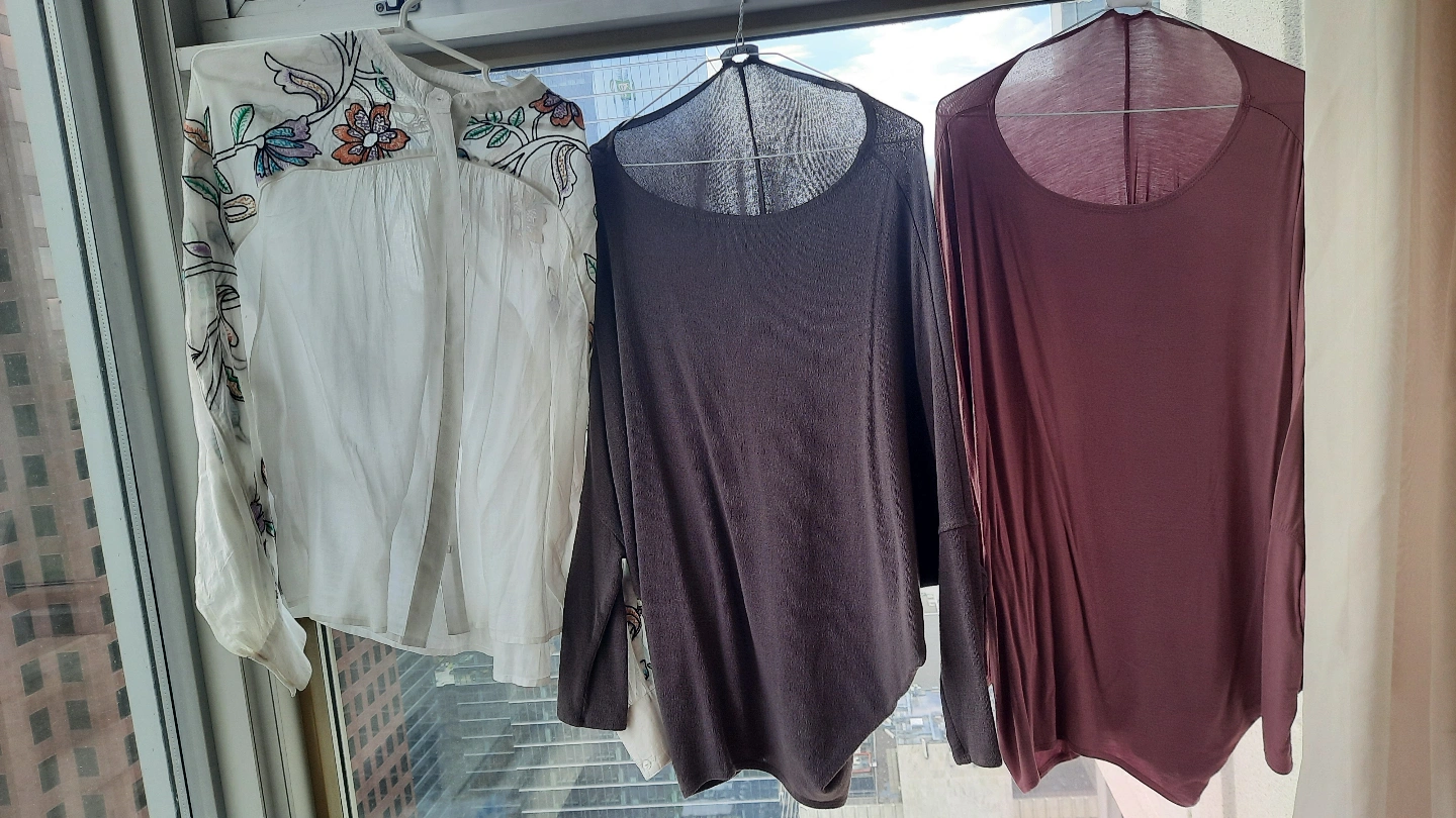 Bundle includes three long-sleeve tops. One white embroidered blouse, 100% cotton voile 2 dolman sleeve tops fits L oversized 5 for all 3