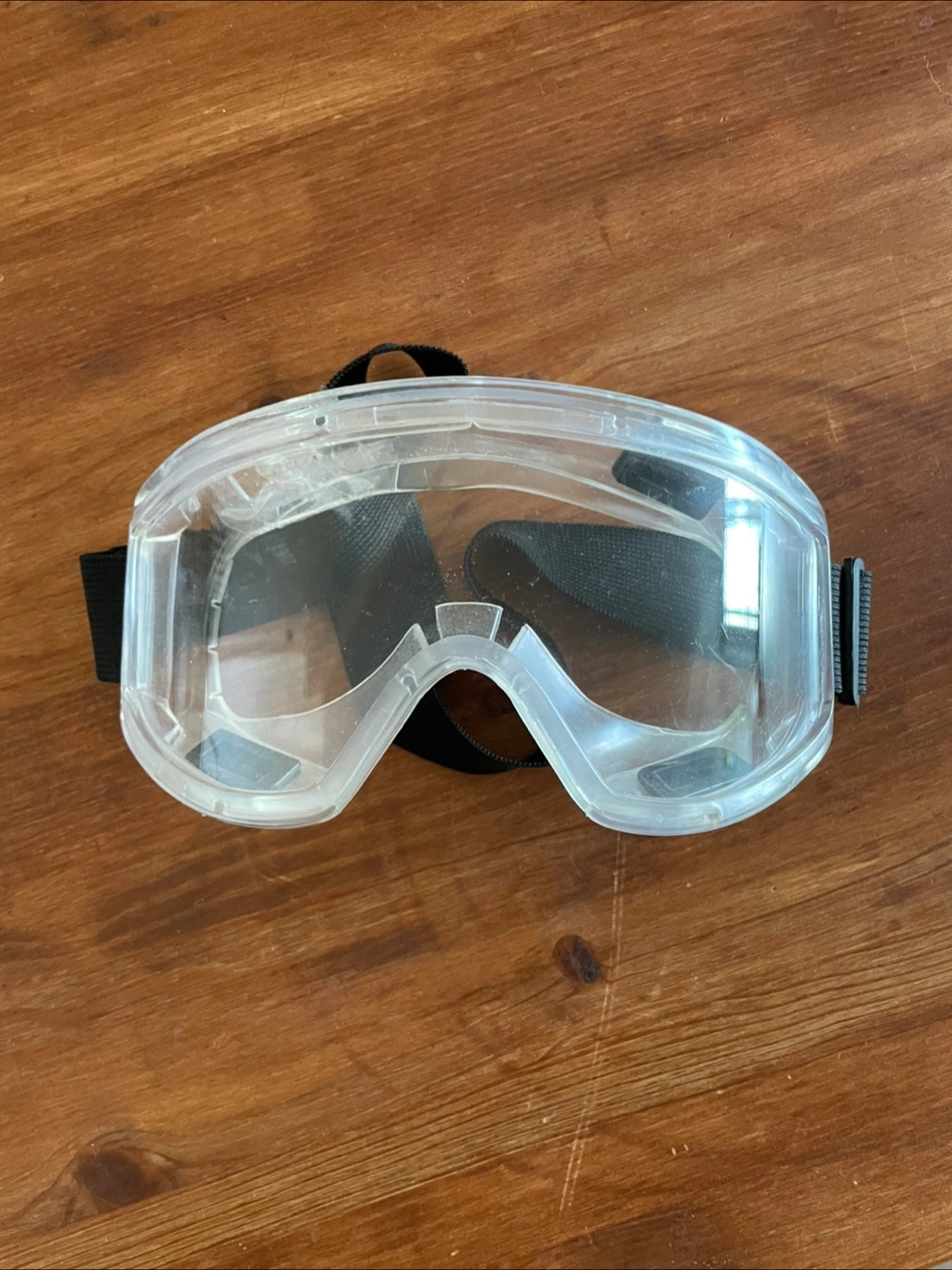 Protective eyewear. Clear lenses. Adjustable black elastic strap. Good for DIY projects or other applications. Free for pick up