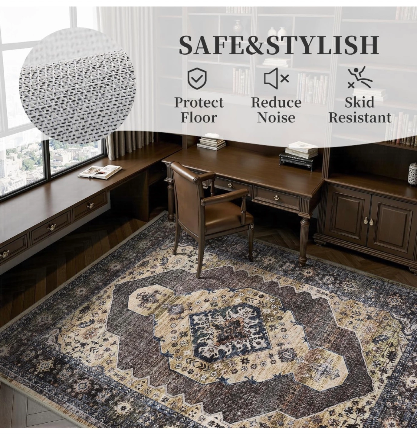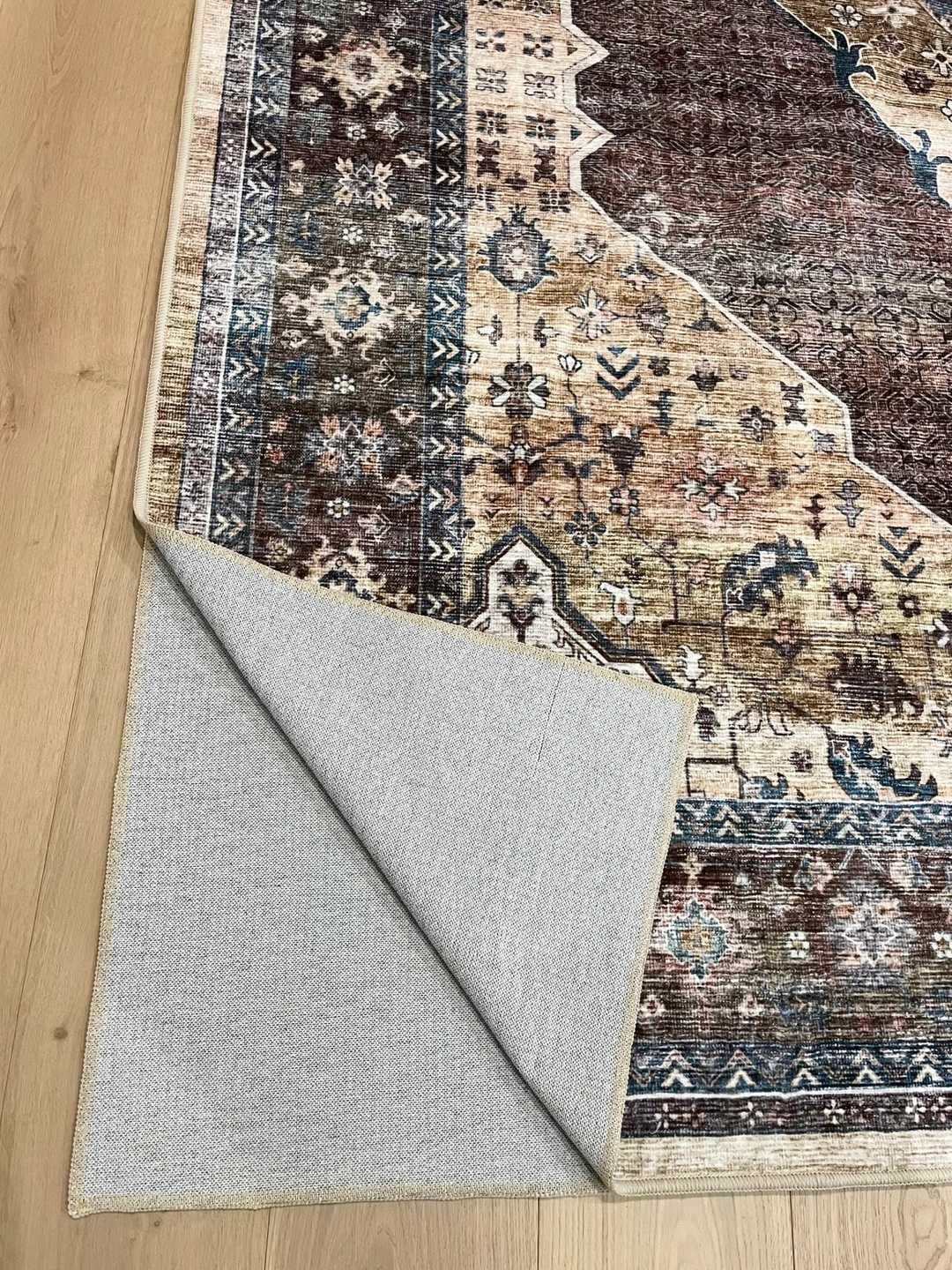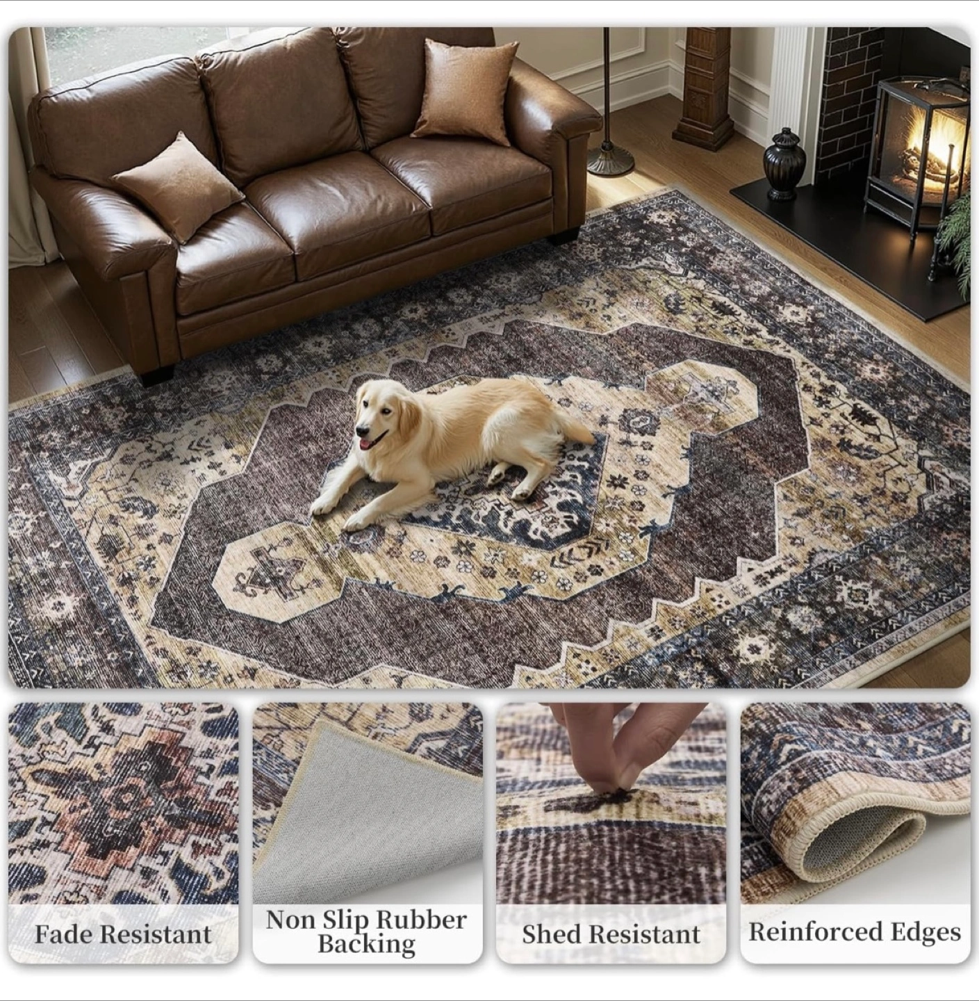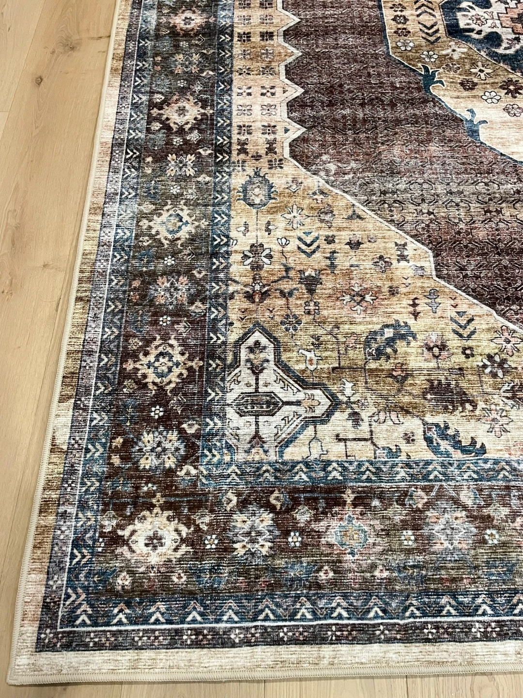 New! Distressed Vintage Large Area Rug. 8x10’ Machine-Washable. Anti-Slip. Brown/Navy/Beige. $80 firm. Reg. Price $180 +HST