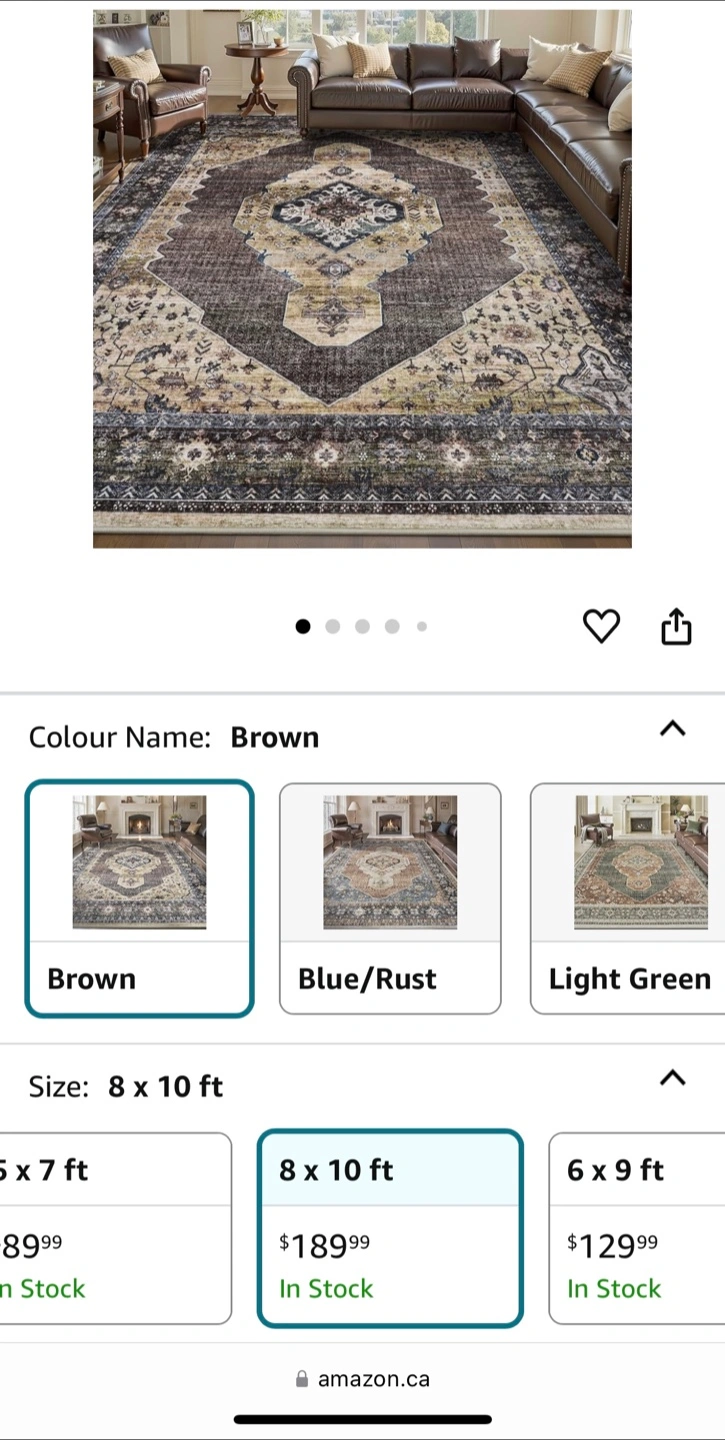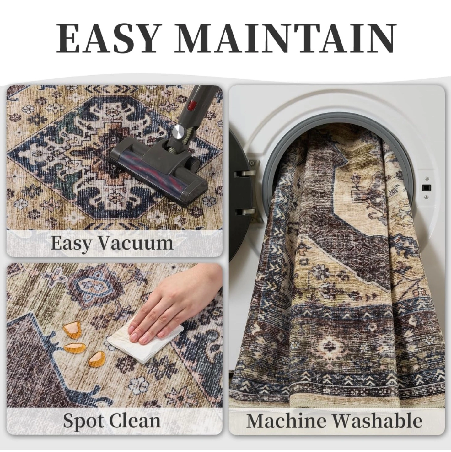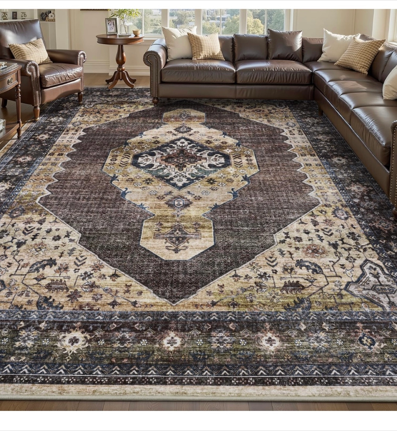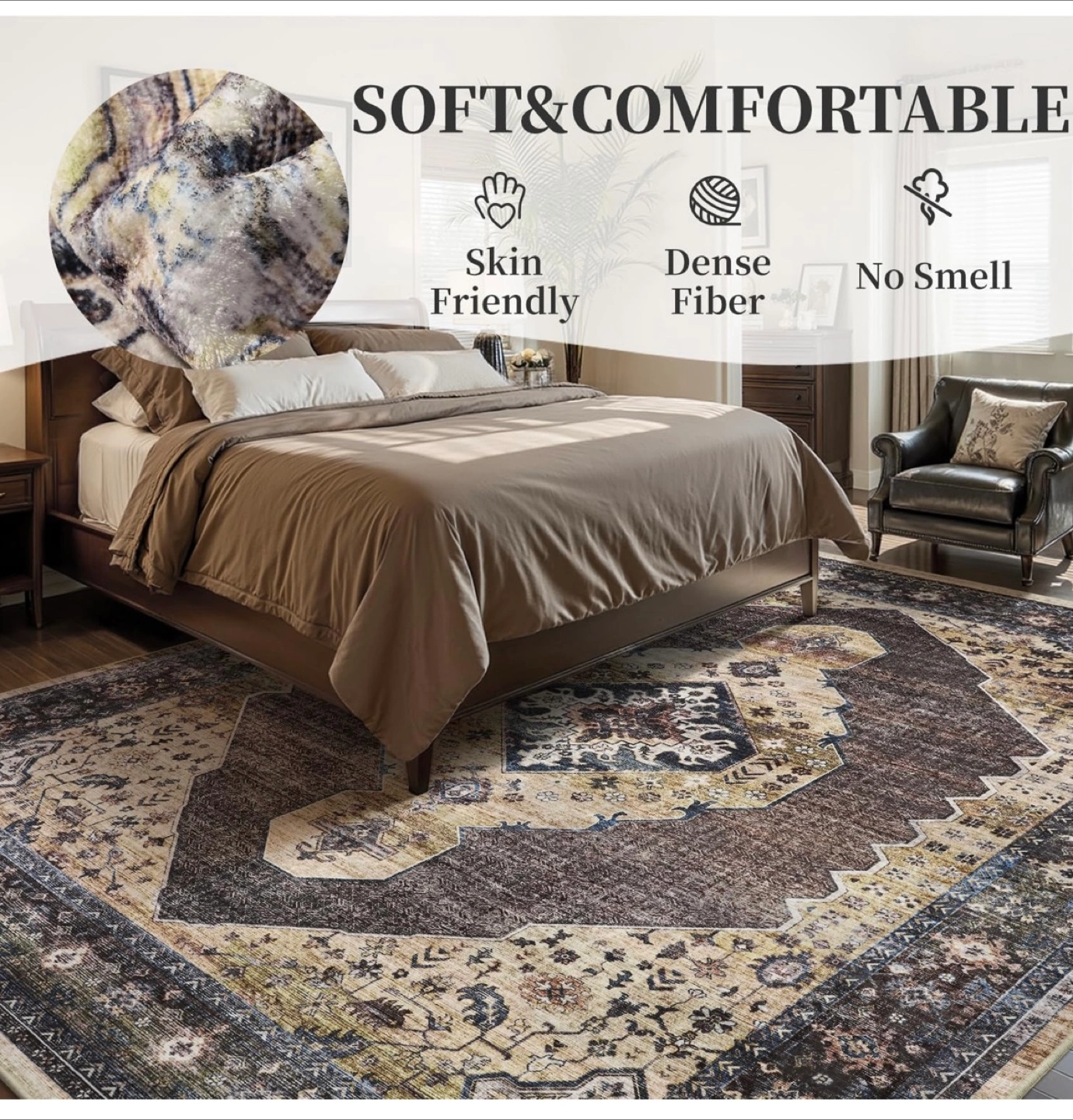 New! Distressed Vintage Large Area Rug. 8x10’ Machine-Washable. Anti-Slip. Brown/Navy/Beige. $80 firm. Reg. Price $180 +HST