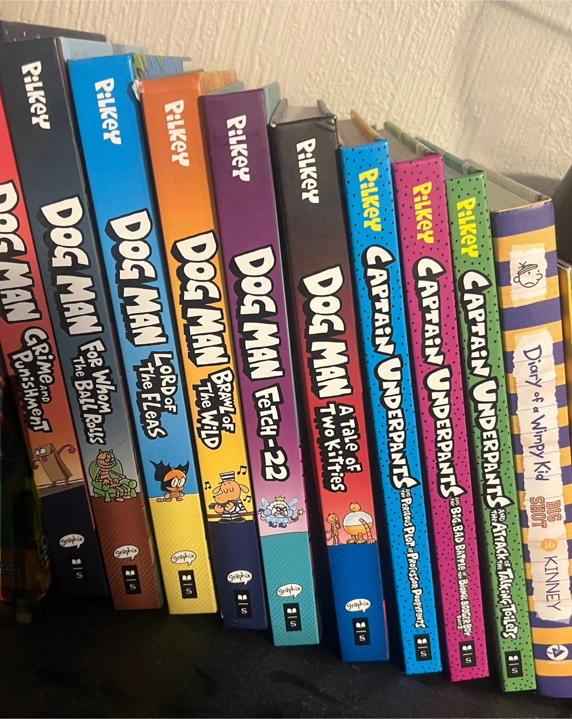 Collection of Dog Man and Captain Underpants books. Graphic novels for sale. I am including the diary of a wimpy kid Can sell individually Great condition Dog man is $12 Captain Underpants are $12 Diary of the wimpy kid is $10
