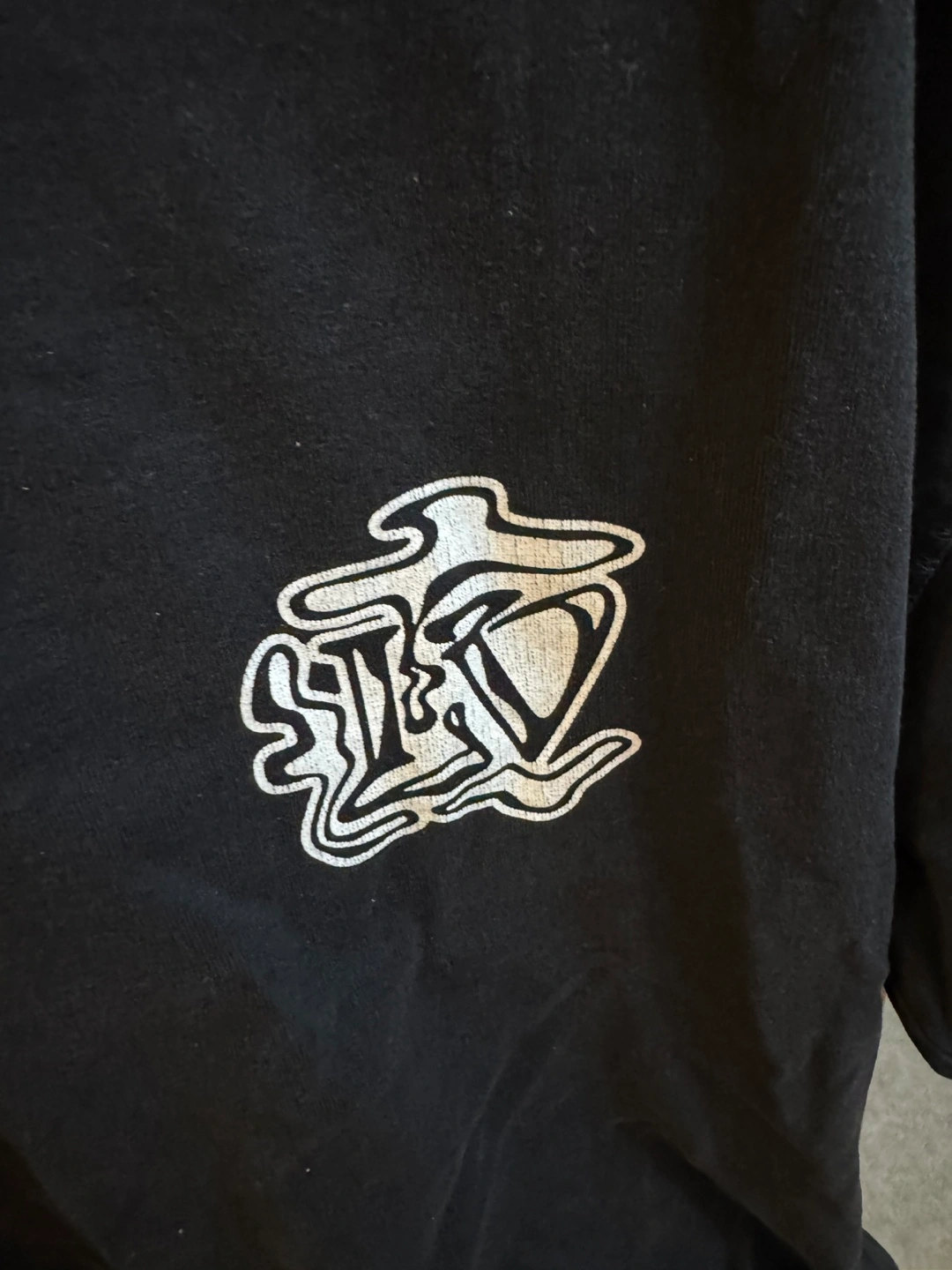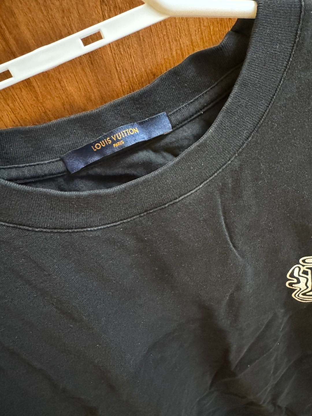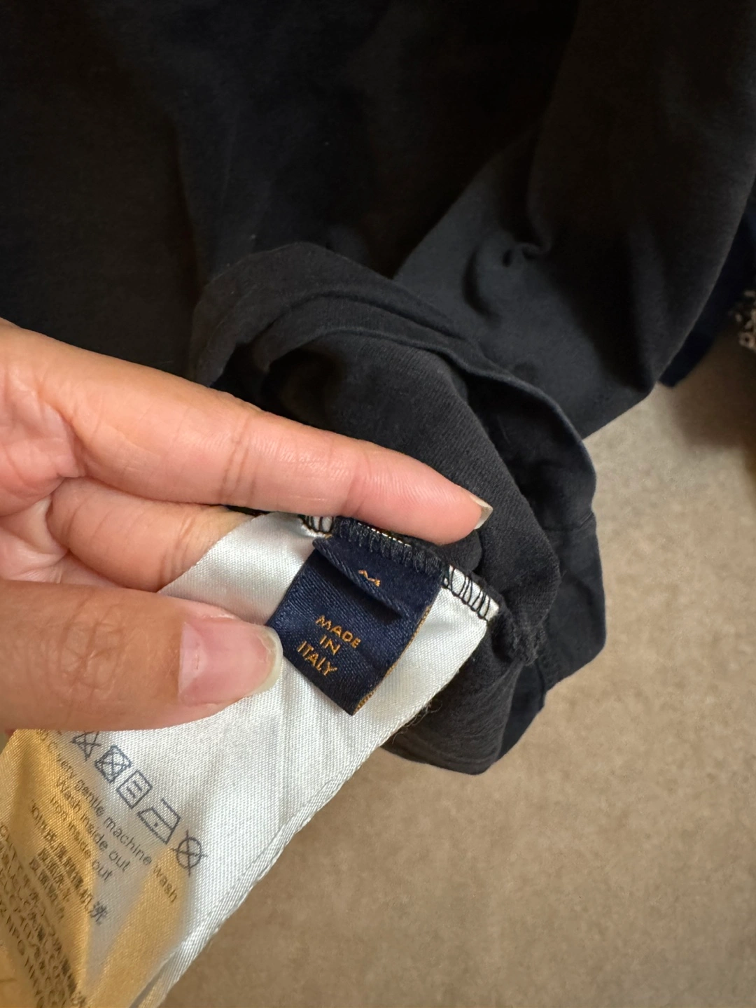 Men's black cotton t-shirt. Features a graphic design. Size Medium. Made in Italy.