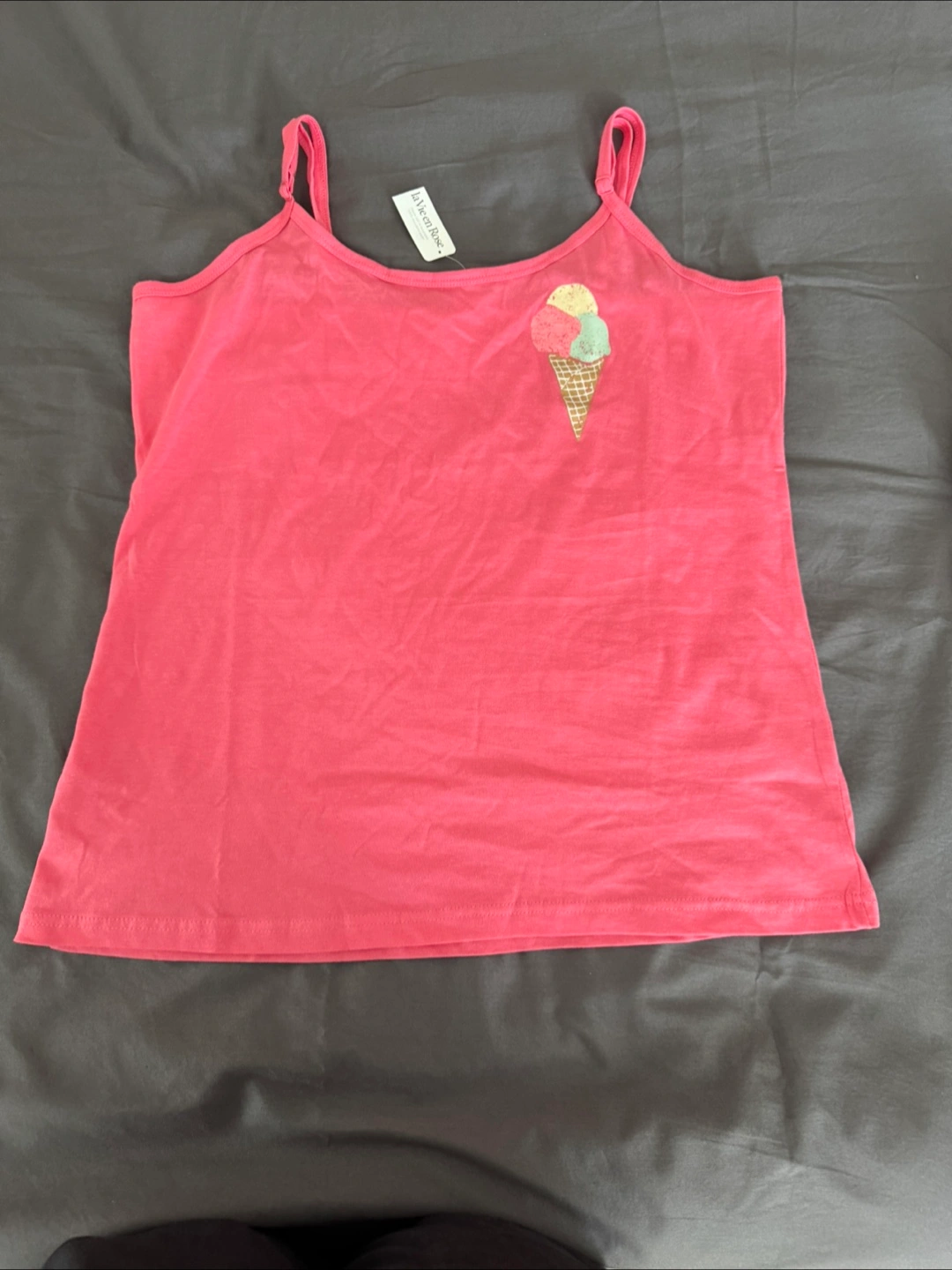 Pink camisole, size medium. Features an ice cream cone design. New with tags. Pick up on Sundays is best. Cash only. Mix and match 3 or more items for a great deal. Free items not included.