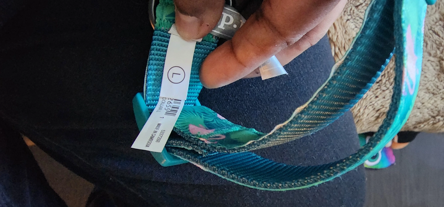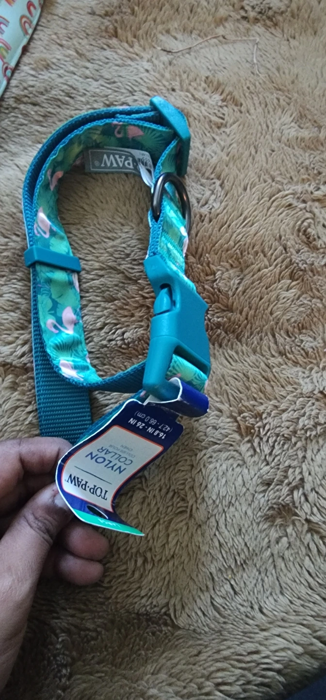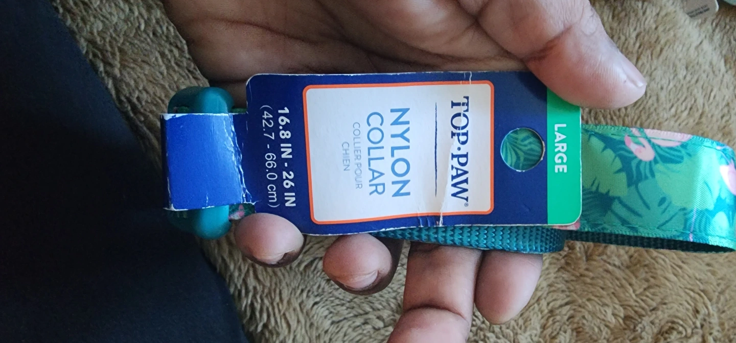 Large dog collar. Teal nylon with tropical print. Adjustable. New with tags.